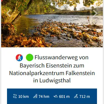 Unser Flusswanderweg kann selbstverständlich auch auf kürzeren Abschnitten erwandert werden. So kannst du entlang des Weges in Ruhe noch weitere Highlights unserer Region entdecken, wie beispielsweise das Nationalparkzentrum Falkenstein mit Haus zur Wildnis in Ludwigsthal und viele weitere mehr.