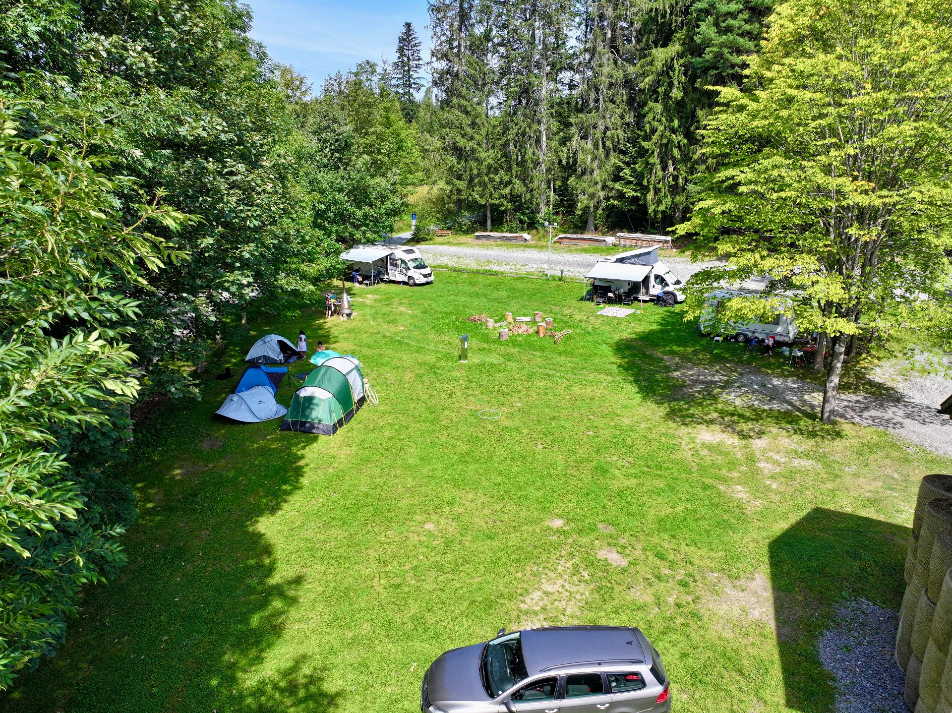 Auf der großen Waldwiese, wo sich Fuchs und Hase "Gute Nacht" sagen, erstreckt sich der schöne, naturnahe Zeltplatz und Stellplatz für 14 Reisemobile.