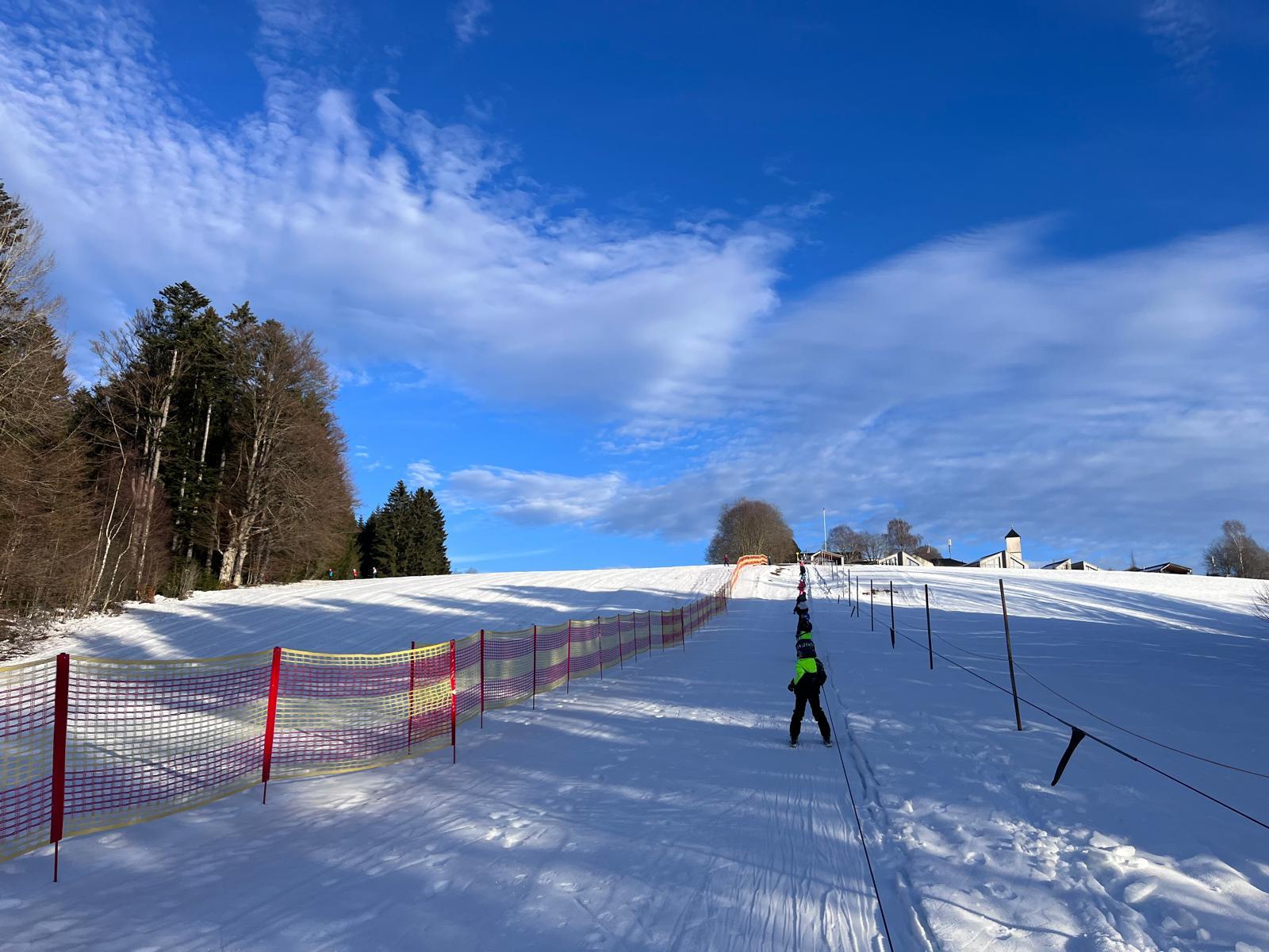 Der Hang ist breit und gleichmäßig geneigt, was ein sicheres und kontrolliertes Fahren ermöglicht. Die geringe Länge und der moderate Höhenunterschied von etwa 100 Metern machen den Lift ideal für Skikurse, die vor Ort von Skischulen angeboten werden.