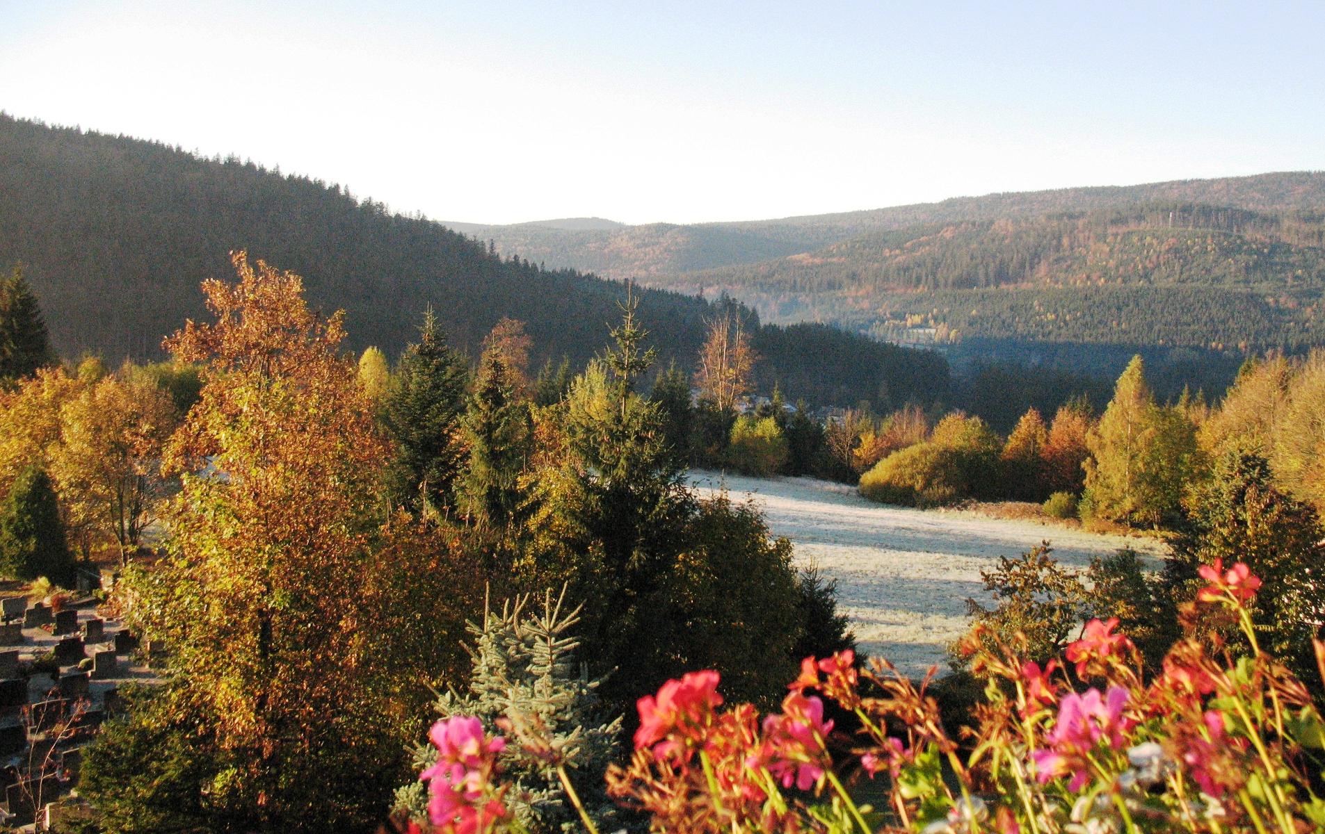 Der Falkenhof classic liegt an einem ruhigen Südhang, mit herrlichem Panoramablick über das Tal, in den Nationalpark, auf den Großen Arber und nach Tschechien.