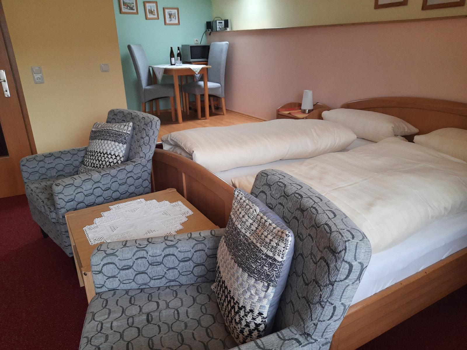 Sie wohnen ruhig und zentral in komfortablen Ferienwohnungen und Appartements mit Balkon oder Terrasse. Alle Wohnungen sind mit Sat-Flat-TV, Mikrowelle und zum Teil mit Geschirrspüler ausgestattet. Für Entspannung sorgen Sauna und Solarium. Ein solarbeheizter Swimmingpool im Sommer (je nach Wetter circa von Mitte Mai bis Mitte September) und eine große Liegewiese stehen Ihnen zur Verfügung. Gartenbenutzung mit Grillplatz und Tischtennis im Sommer. Kneippbecken und Wanderwege befinden sich in unmittelbarer Nähe. Unser Haus bietet Ihnen zu allen Jahreszeiten einen angenehmen Urlaub und beste Erholung.