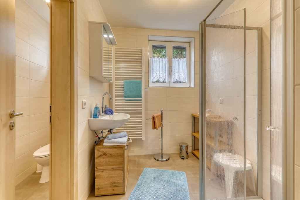 Das Bad in der Wohnung am großen Rachel ist seniorengerecht umgebaut.