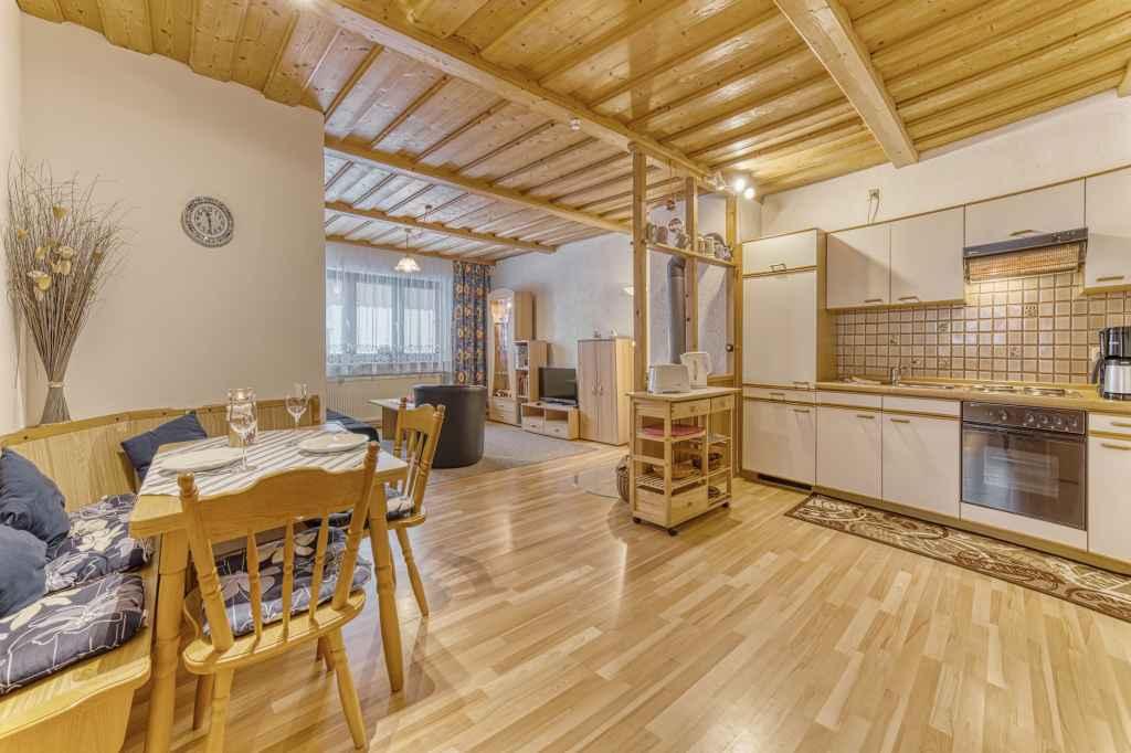 Mit je 2 Schlafräumen, Wohnküche mit SAT-TV und DU/WC. Eine FeWo mit Kaminofen und eine FeWo mit Pellettofen zusätzlich zur Zentralheizung.