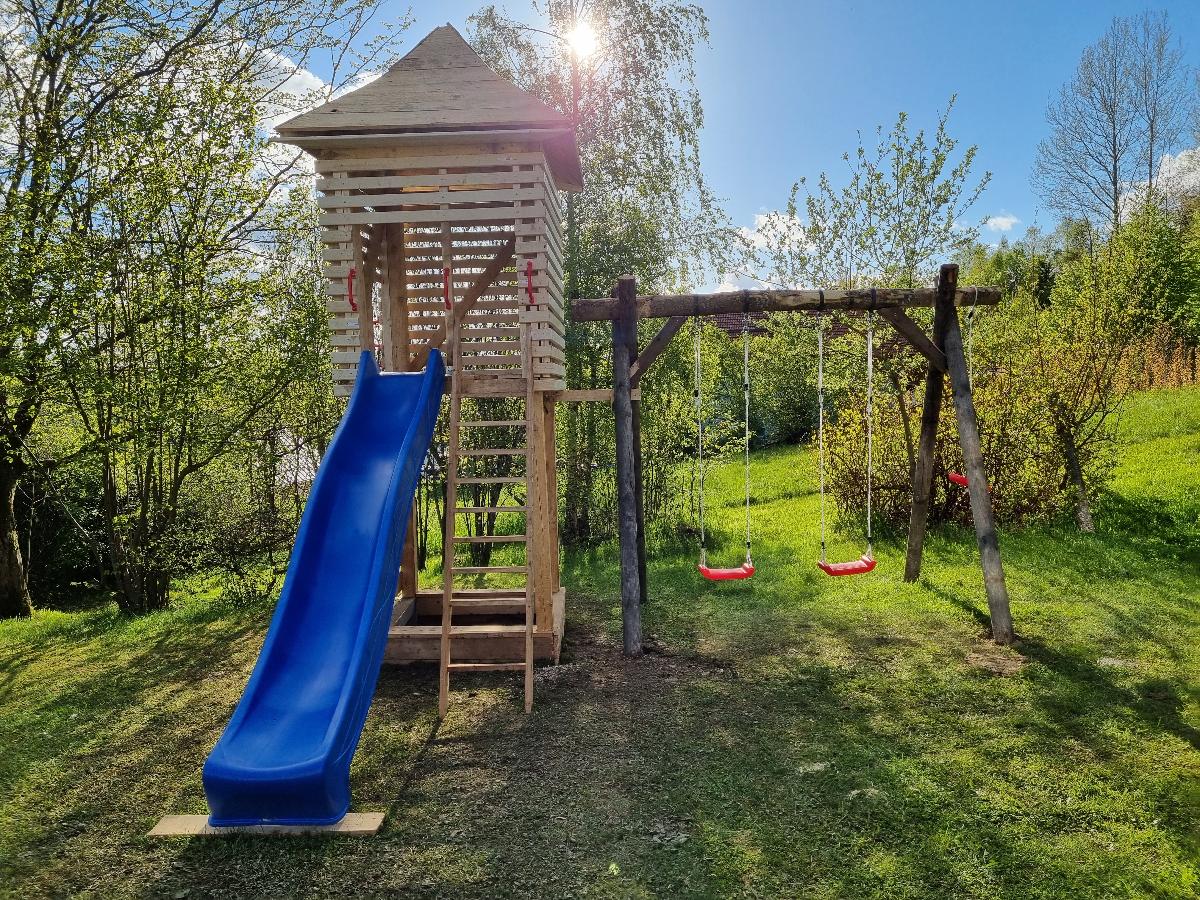 Das Ferienhaus Mauth verfügt über ein 2000 m² großes Grundstück mit riesigem Garten mit Kinderspielplatz und im Sommer mit Riesentrampolin von "Berg" derIhnen und Ihren Kindern jede Menge Platz zum Grillen, Entspannen und Spielen bietet! Durch die günstige Lage auf dem sog. "Fuchsberg" in Mauth können Sie täglich eine unglaubliche Aussicht auf den Bayerischen Wald genießen. Wellnessbereich im Keller mit Whirlpool und Sauna exculsiv für die Gäste des Chalets!