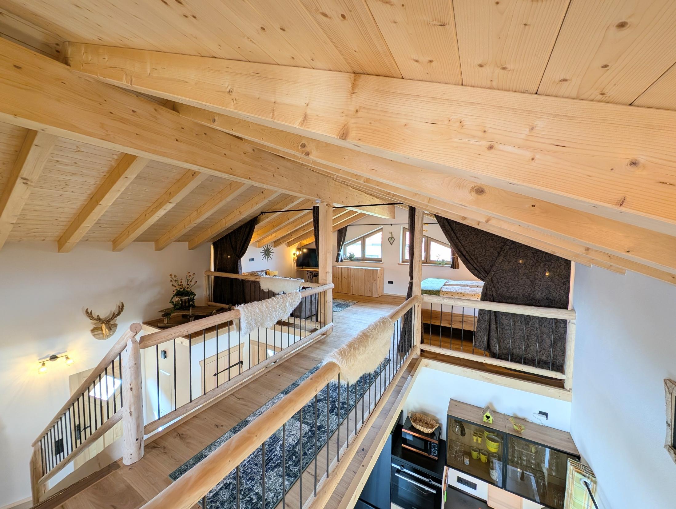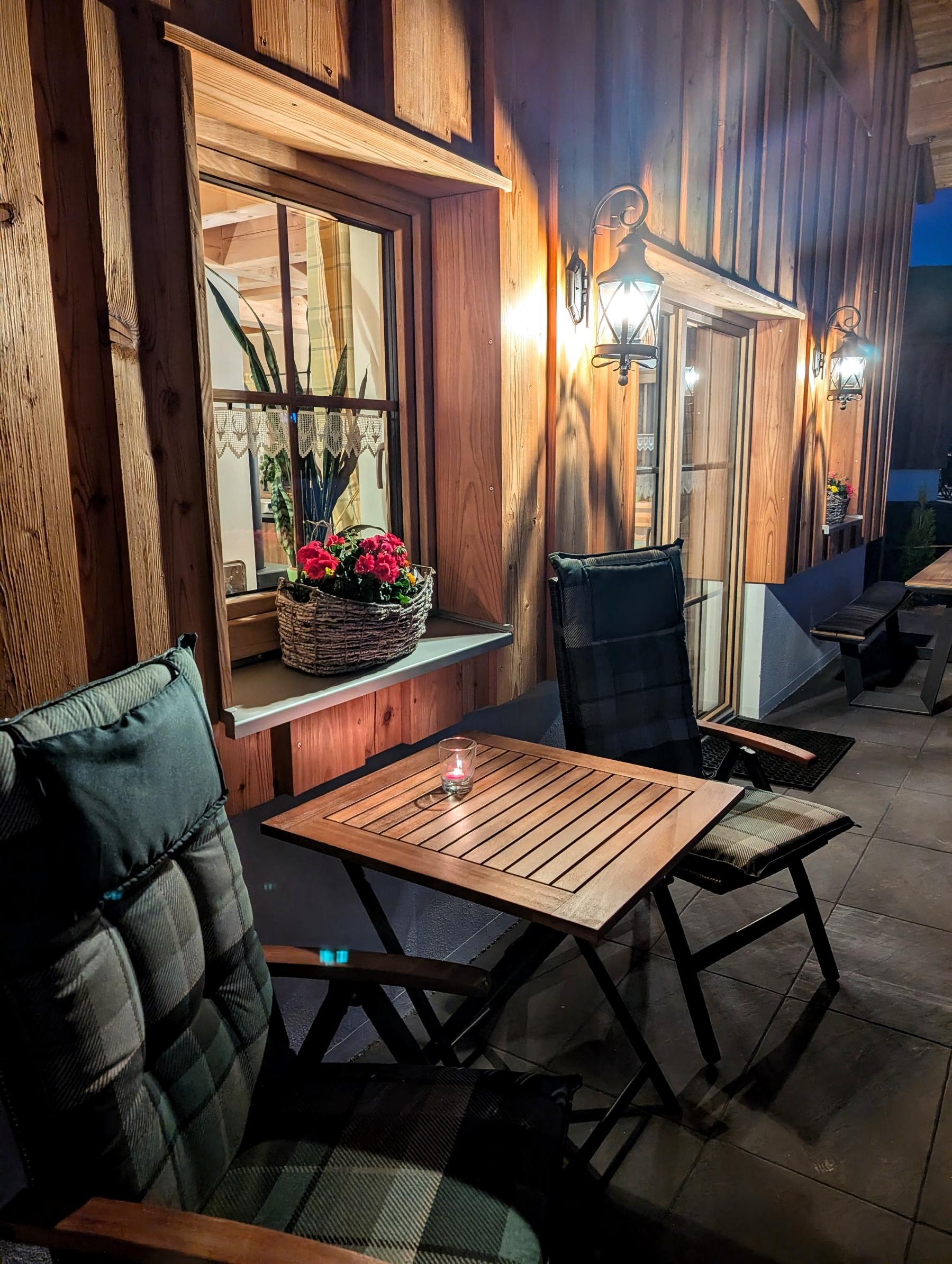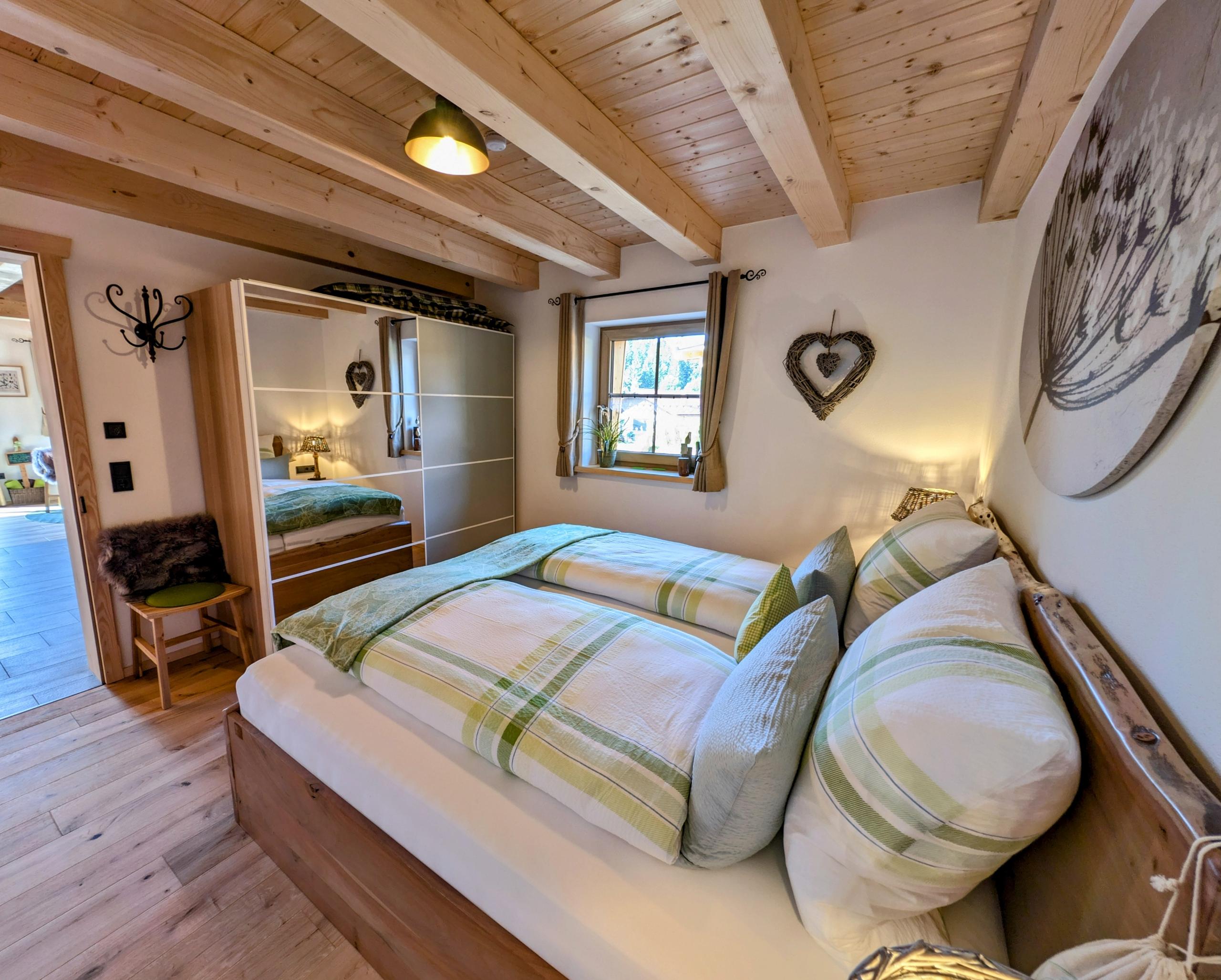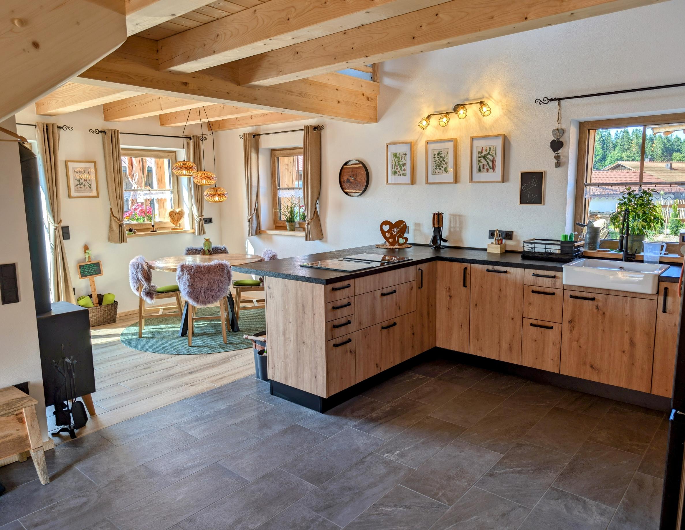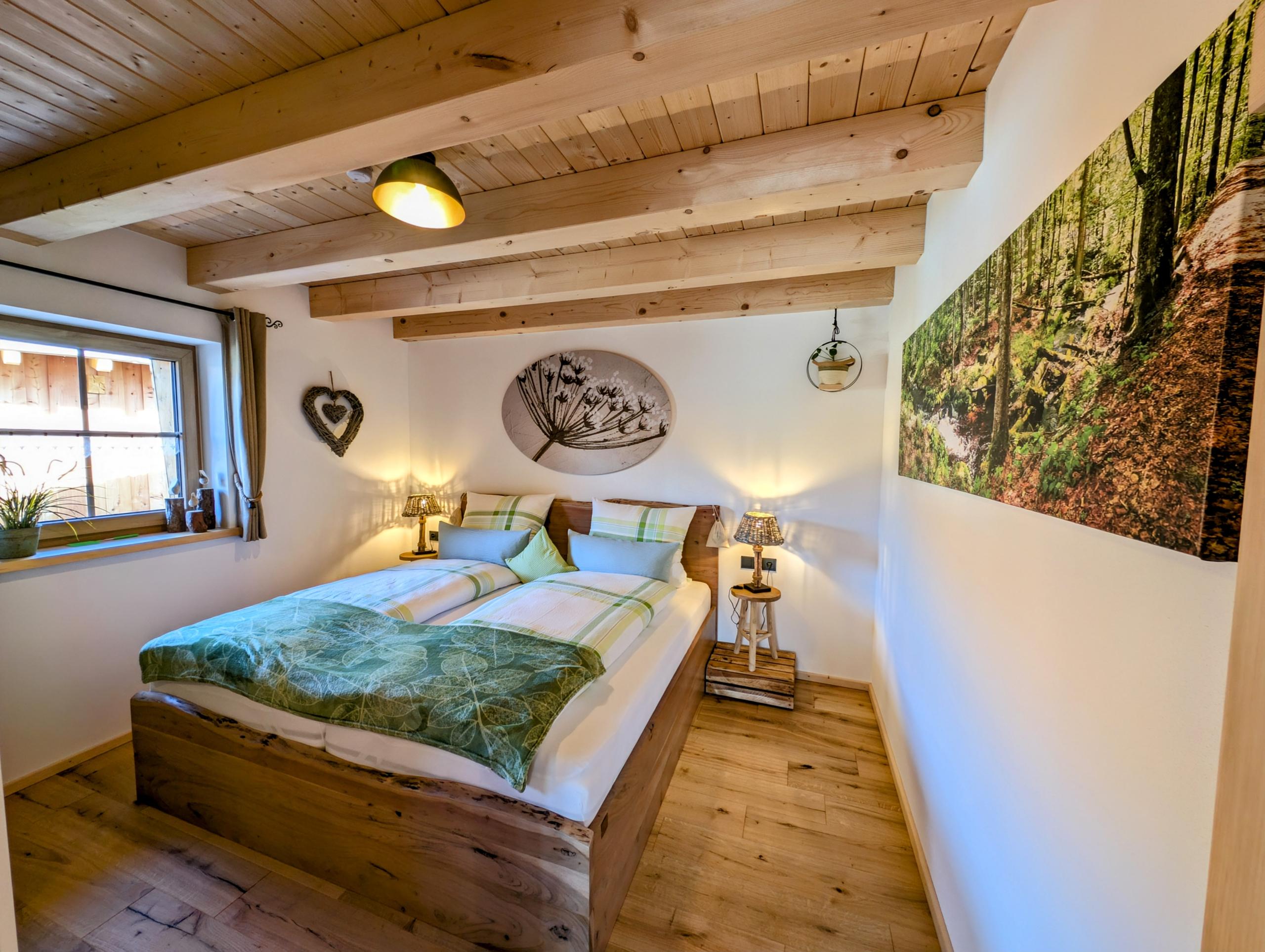 Wir setzen großen Wert auf Nachhaltigkeit und die Nutzung von unseren eigenen Baumaterialien, die aus unserem eigenen Wald stammen. Daher sind die Verschalungen, Türen, Treppen und Geländer allesamt aus diesen wertvollen Ressourcen gefertigt. Für eine behagliche Wärme und umweltfreundliche Stromversorgung sorgt unsere eigene Hackschnitzelanlage, die die Fußbodenheizung in den Chalets betreibt, sowie eine Photovoltaikanlage zur Stromgewinnung, die harmonisch in unseren Hof integriert sind.