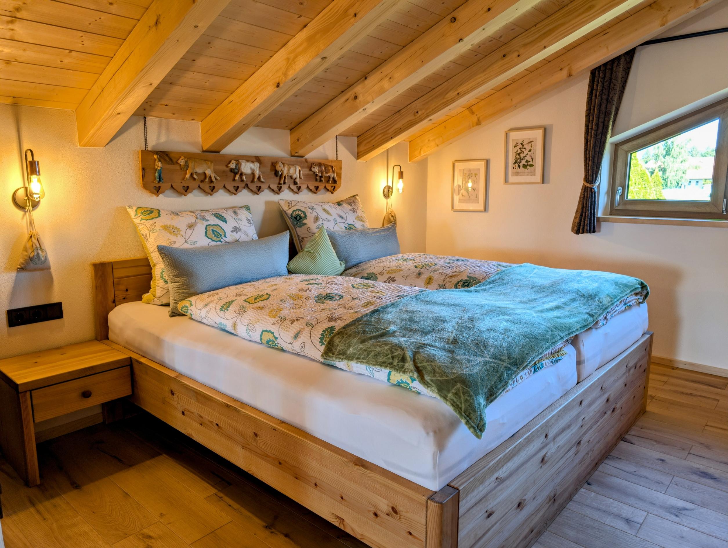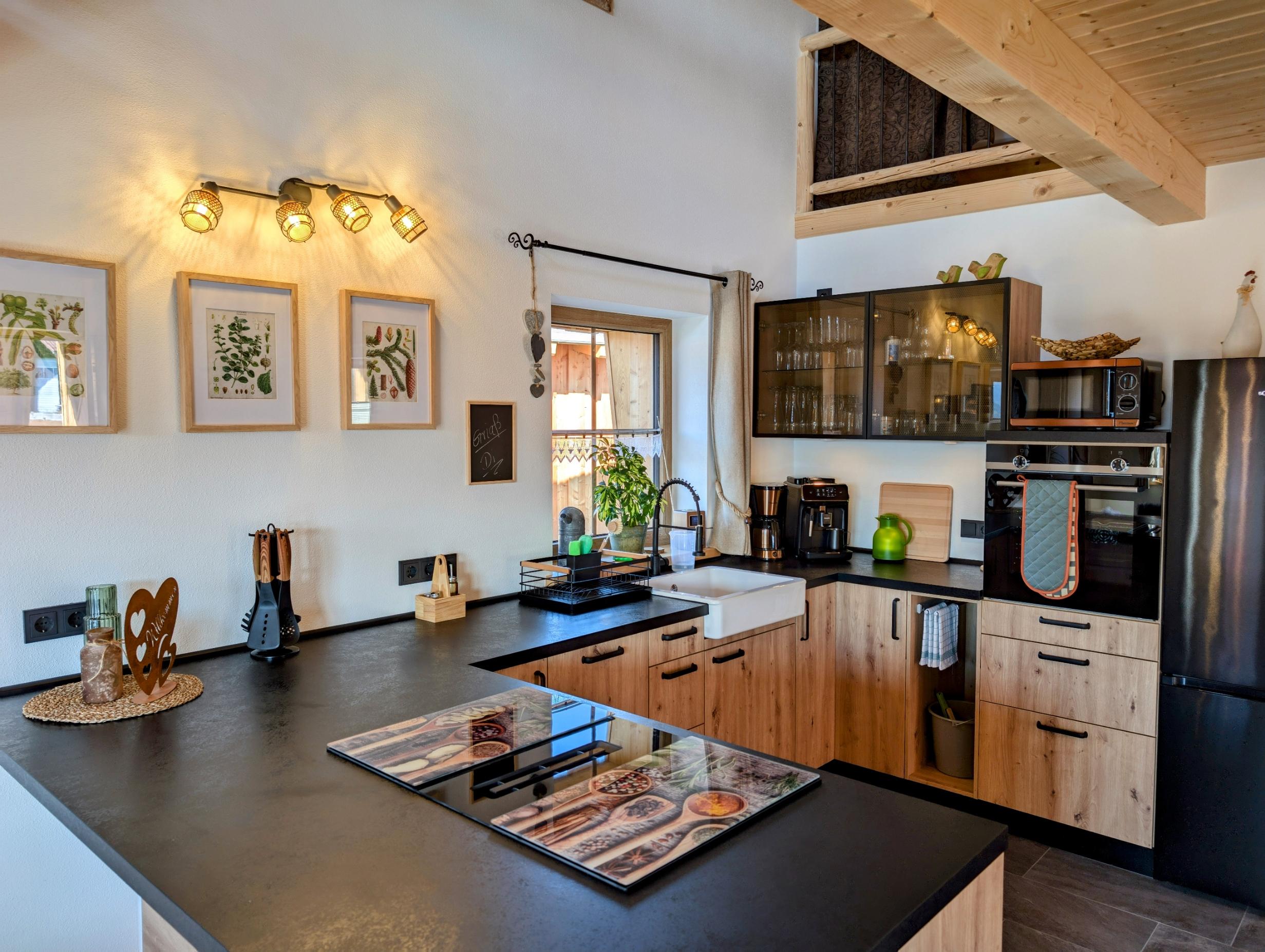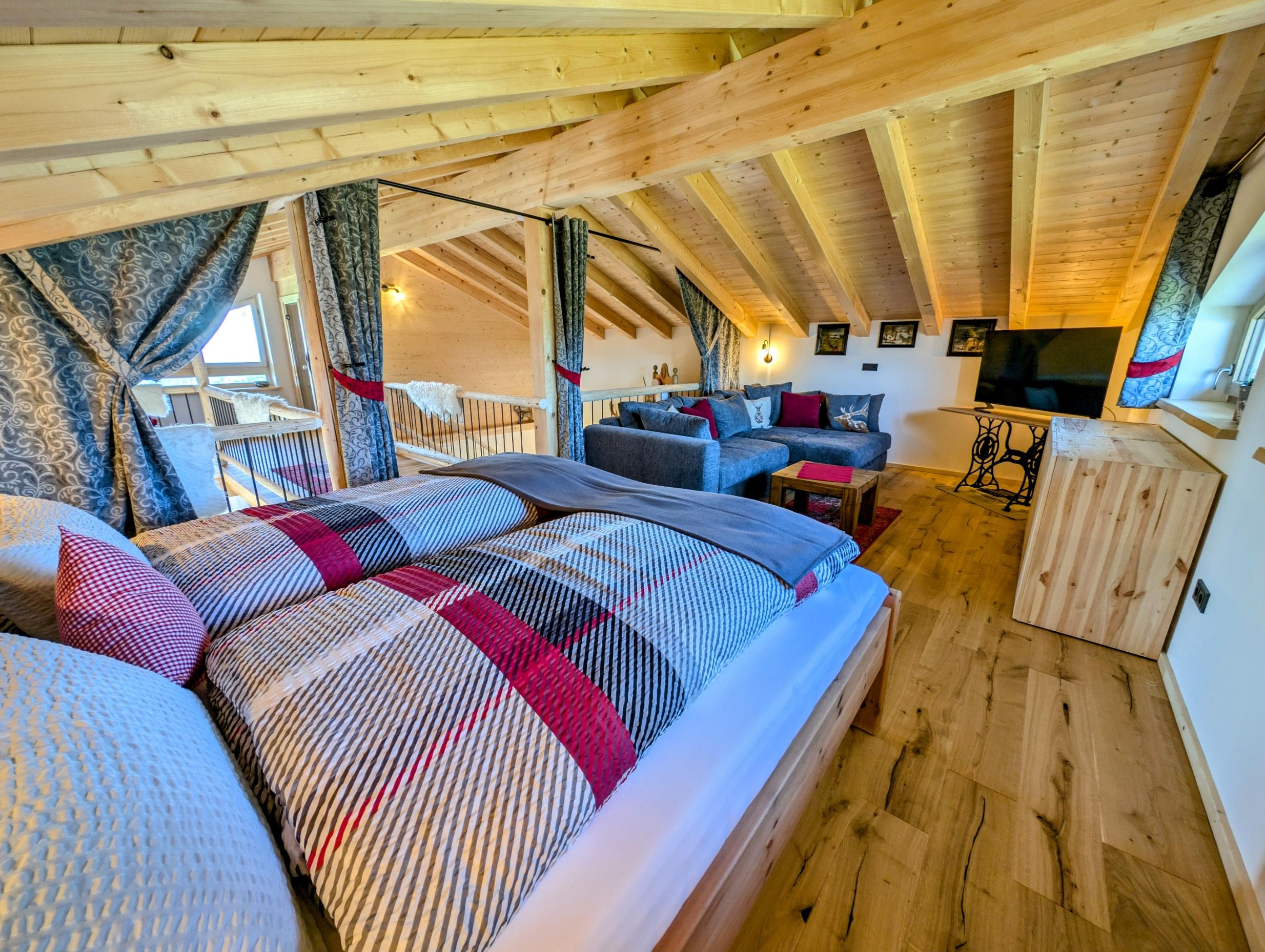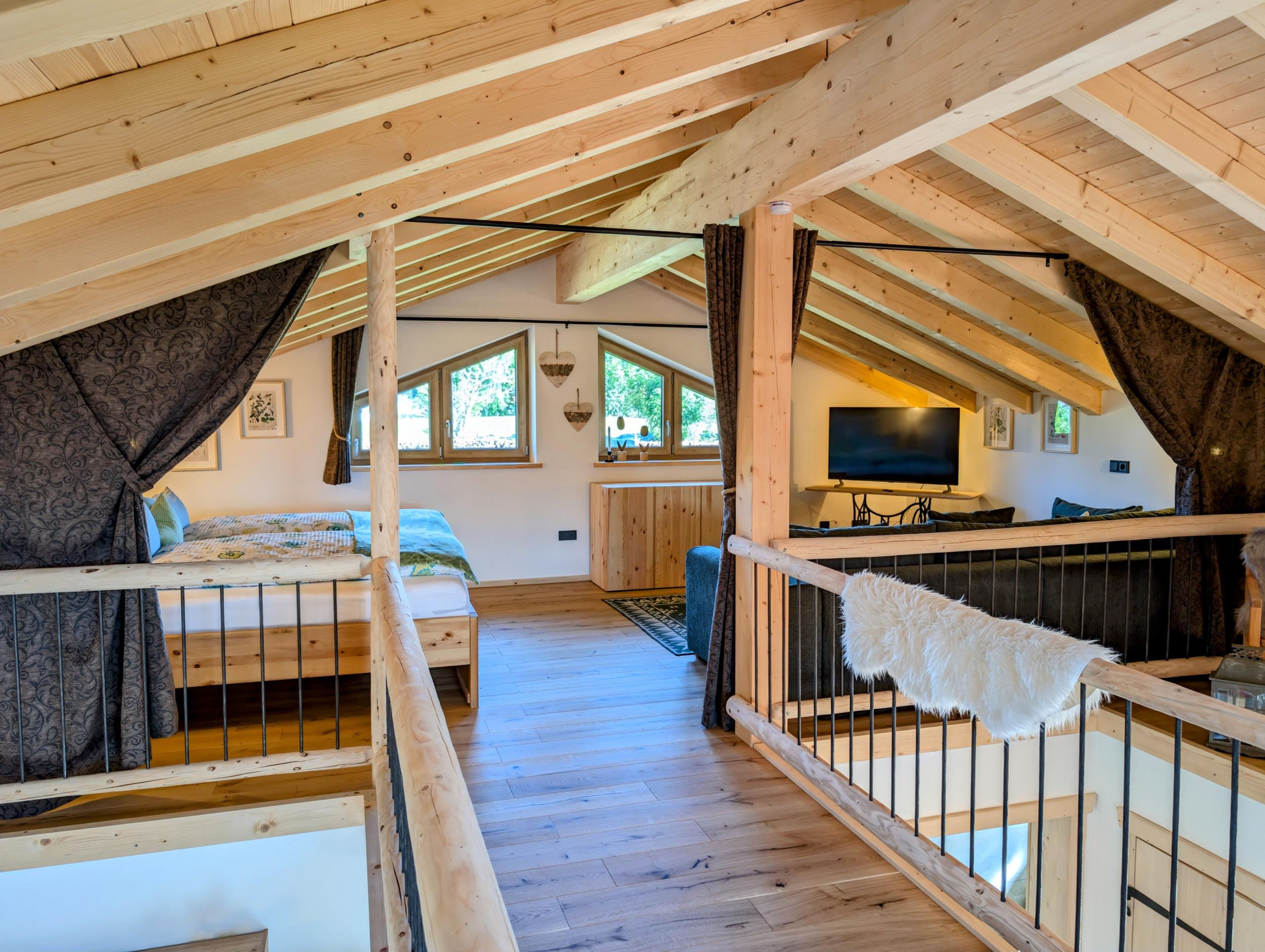 Wir setzen großen Wert auf Nachhaltigkeit und die Nutzung von unseren eigenen Baumaterialien, die aus unserem eigenen Wald stammen. Daher sind die Verschalungen, Türen, Treppen und Geländer allesamt aus diesen wertvollen Ressourcen gefertigt. Für eine behagliche Wärme und umweltfreundliche Stromversorgung sorgt unsere eigene Hackschnitzelanlage, die die Fußbodenheizung in den Chalets betreibt, sowie eine Photovoltaikanlage zur Stromgewinnung, die harmonisch in unseren Hof integriert sind.