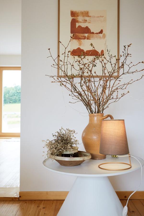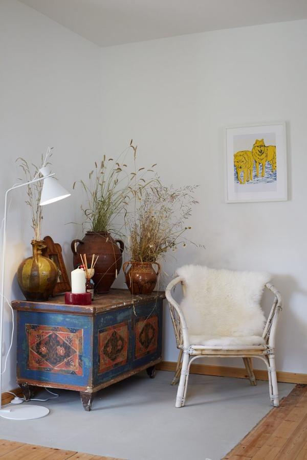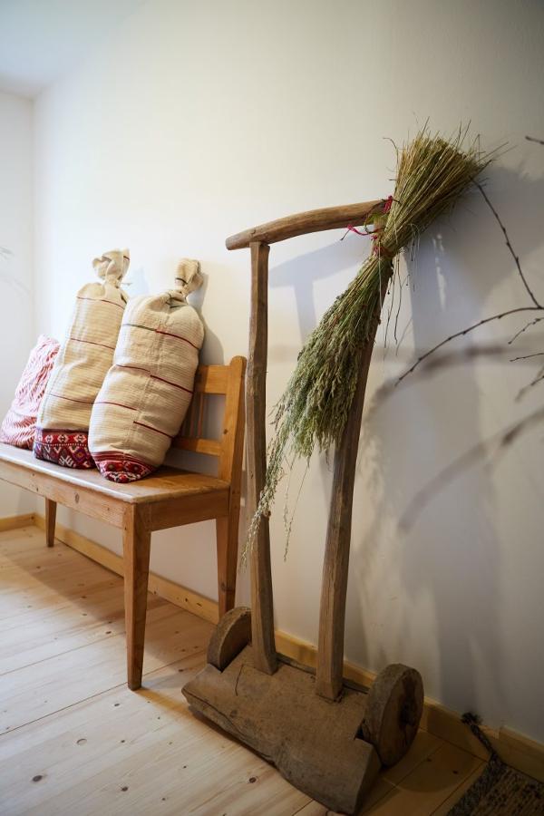 Alles im Haus ist bewußt schlicht und zurückhaltend: liebevoll ausgewählt bilden modernes Design, alte Bauernmöbel und kreative Objekte ein entspannendes, einladendes Miteinander. Die Natur findet sich auch hier im Hausinneren: leuchtende Kränze, Vasen voller duftender Gräser und Blumen zieren praktisch jeden Raum.