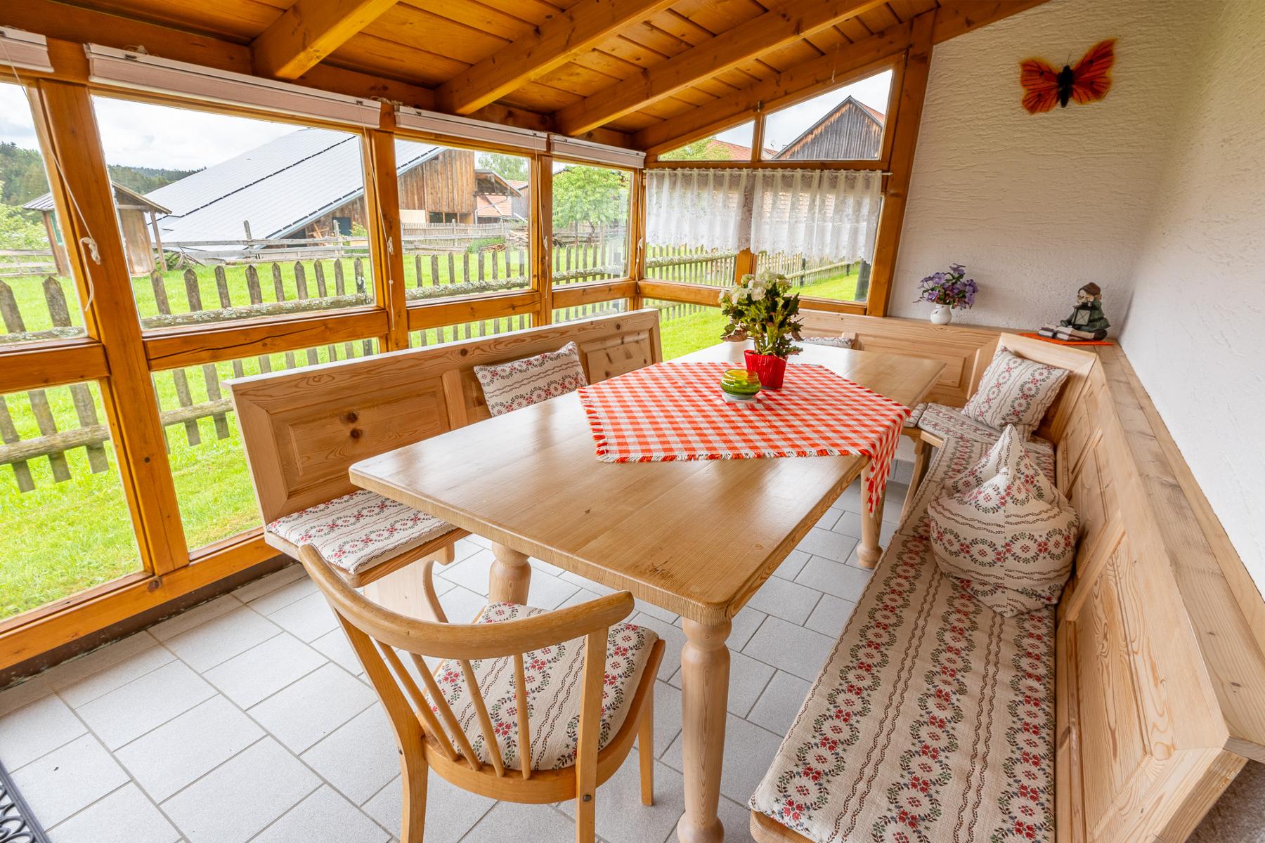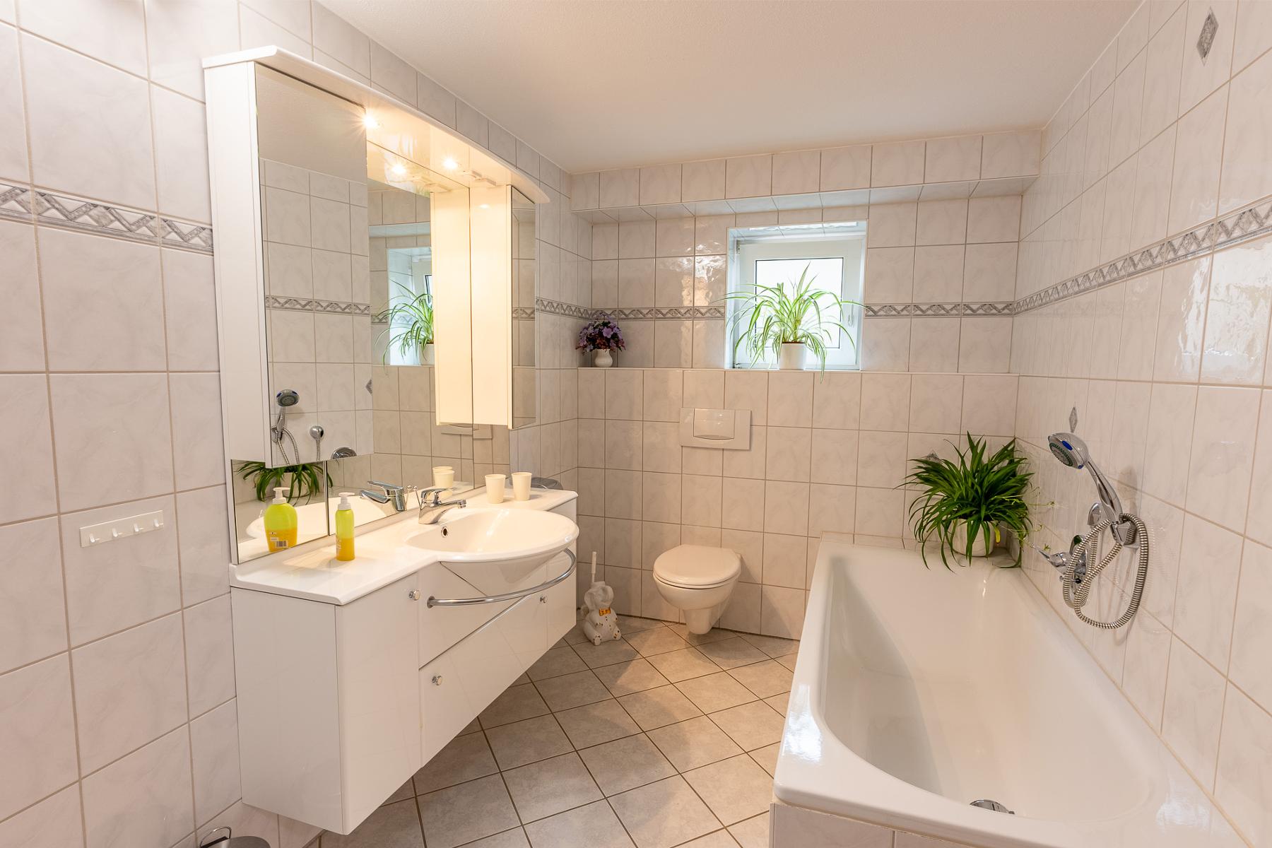 Die Wohnung verfügt über ein geräumiges Badezimmer mit Dusche und Badewanne, in dem Sie sich nach einem erlebnisreichen Tag erfrischen können. Lassen Sie sich von unserem Wintergarten bezaubern, der Ihnen zu jeder Jahreszeit einen herrlichen Ausblick auf die Umgebung ermöglicht. Genießen Sie hier Ihr Frühstück oder entspannen Sie im gemütlichen Außenbereich unseres Gartens.