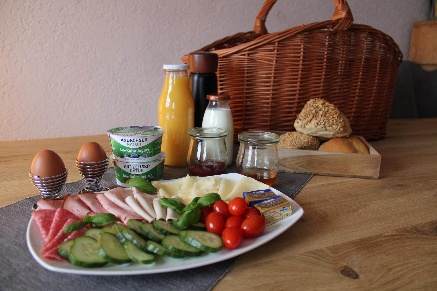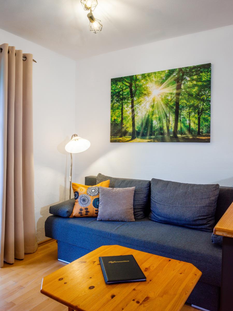 Ferienwohnung Falke ist im 2. Stock, hat 37qm, ein Schlafzimmer, Wohnzimmer, Küche und Dusche/WC. Im Wohnzimmer und Schlafzimmer ist ein Balkon nach Süden mit traumhaftem Panoramablick bis zu den Alpen bei klarem Wetter.