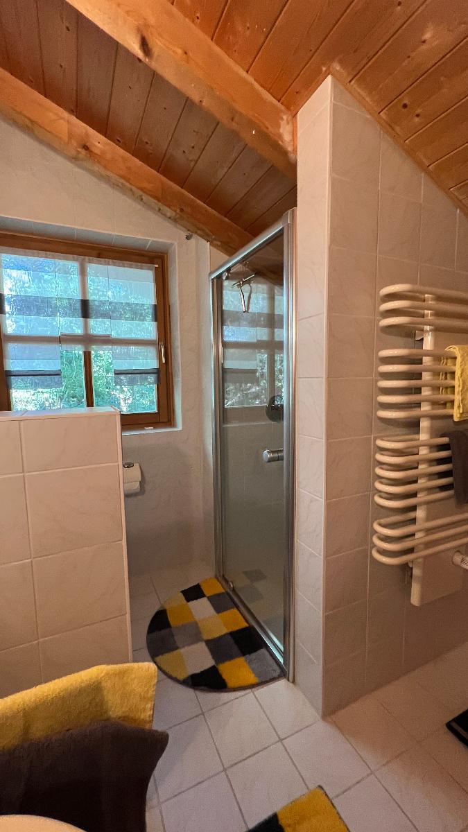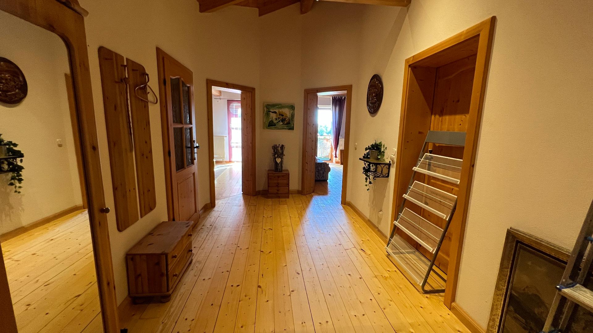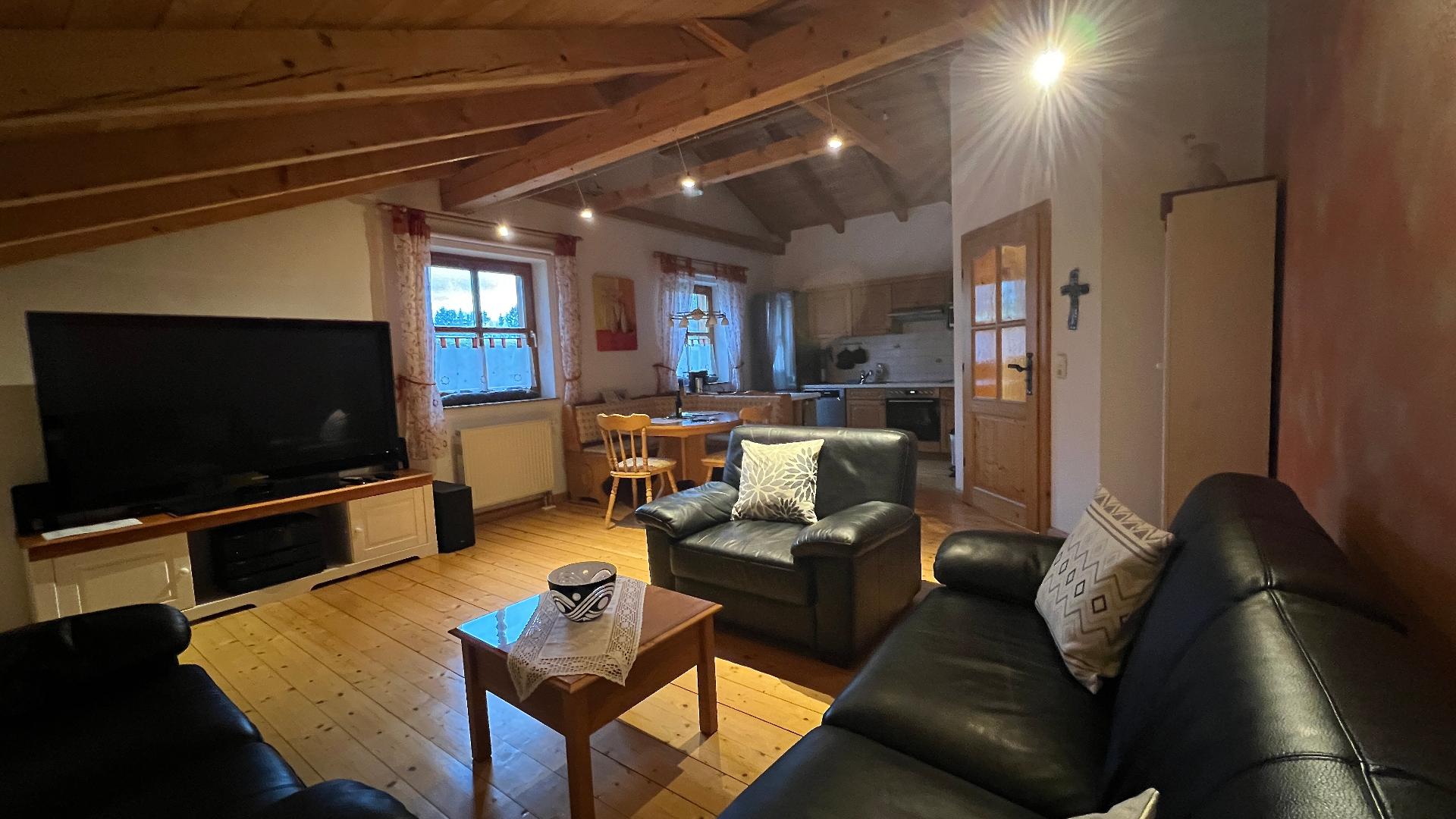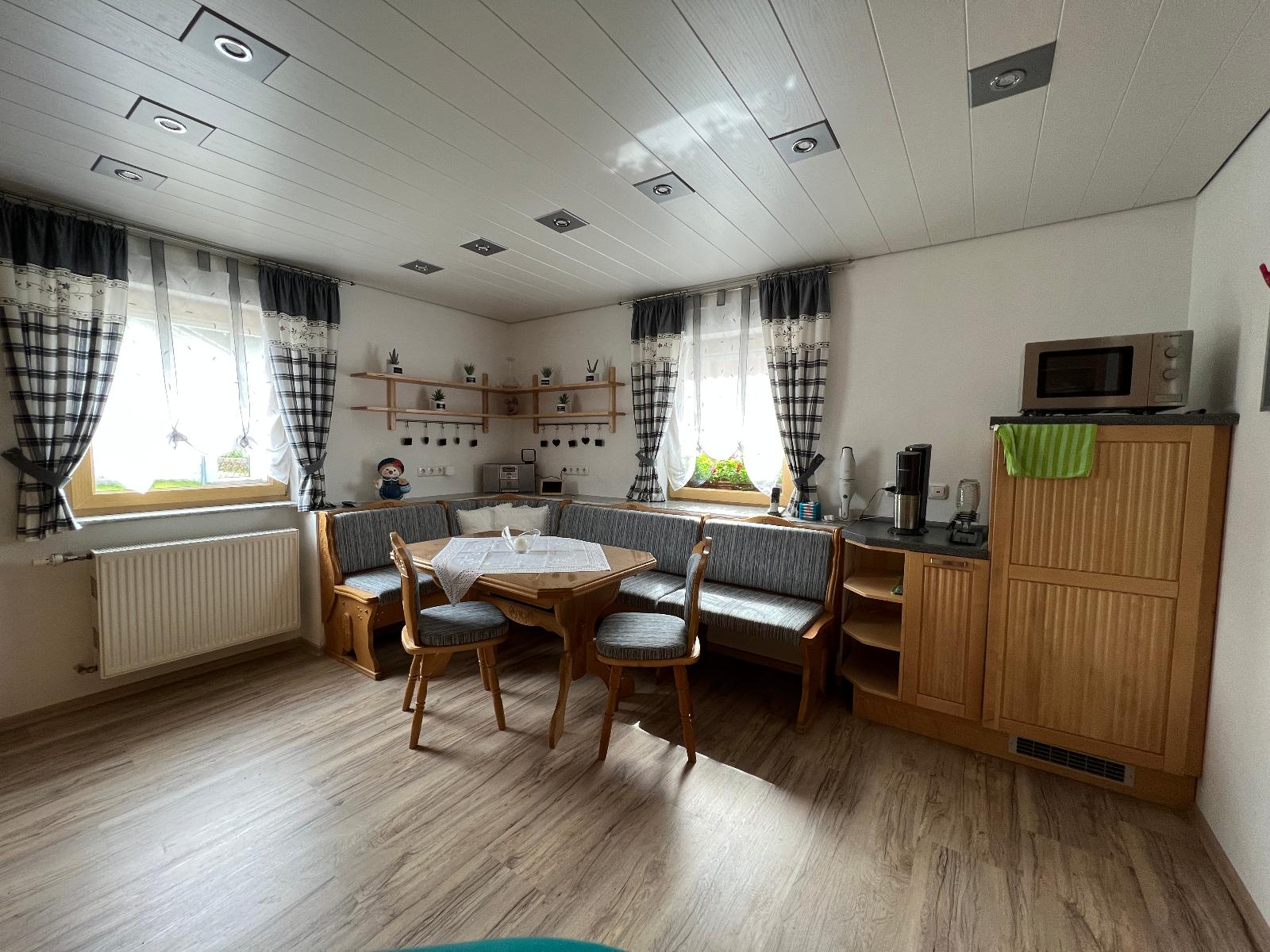 Unsere gemütliche Ferienwohnung "Ausblick" befindet sich im Haus der Vermieter im 1. Stock (Mansarde) und bietet Platz für 2-4 Personen und ein Babybeistellbett.