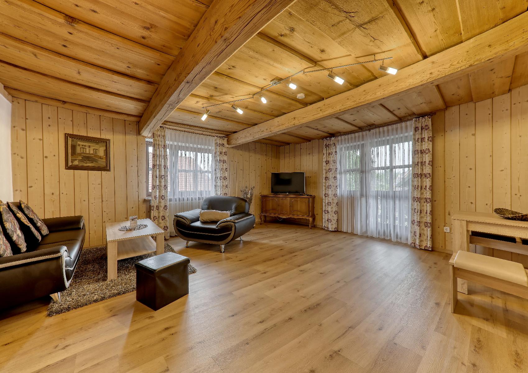Sie wohnen in geräumigen, gemütlich eingerichteten Ferienwohnungen. In verschiedenen Größen 38, 55, 60, 75 qm, alle Wohnungen verfügen über einen Balkon oder Terrasse mit eingezäuntem Garten. Oder in unserm Ferienhaus für Familien und Gruppen.