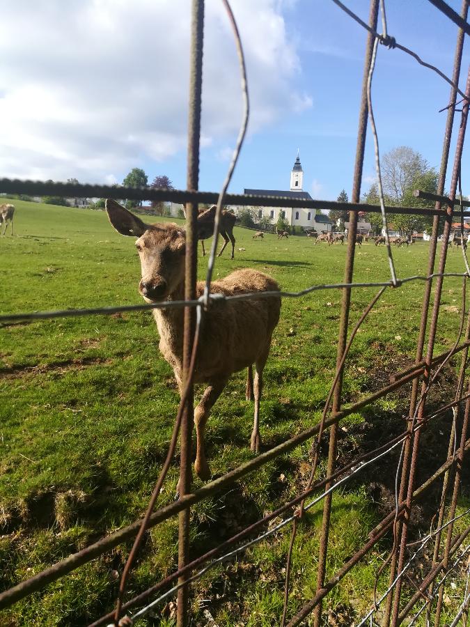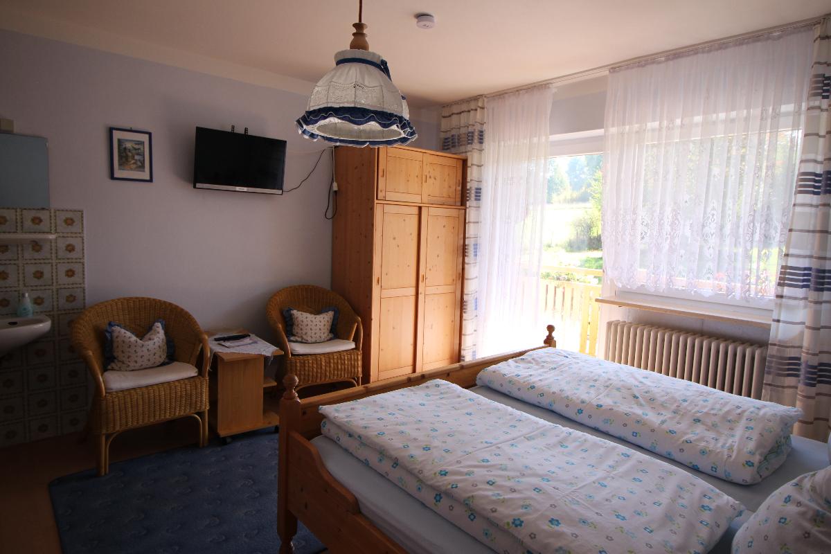 Herrlicher Ausblick auf die Bayerwaldberge Rachel und Lusen. Wanderwege und Loipen und Skilift ab Haus, 3 Doppelzimmer, alle Zimmer mit Dusche und WC, Balkon. 2 Doppelzimmer mit SAT-TV, gemütlicher Aufenthaltsraum mit Küche, SAT-TV, reichhaltiges Frühstück, mit fast allen Produkten vom Haus bzw. Region, Begrüßungsschnaps, Gartenhaus mit Grillmöglichkeit, Liegewiese, Parkplatz.