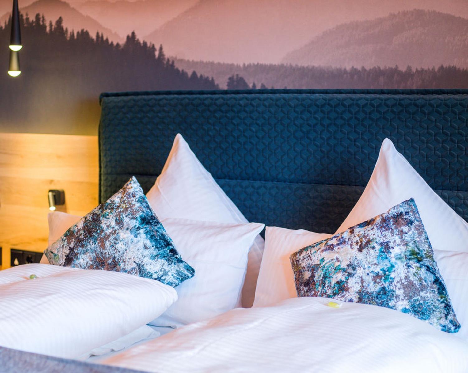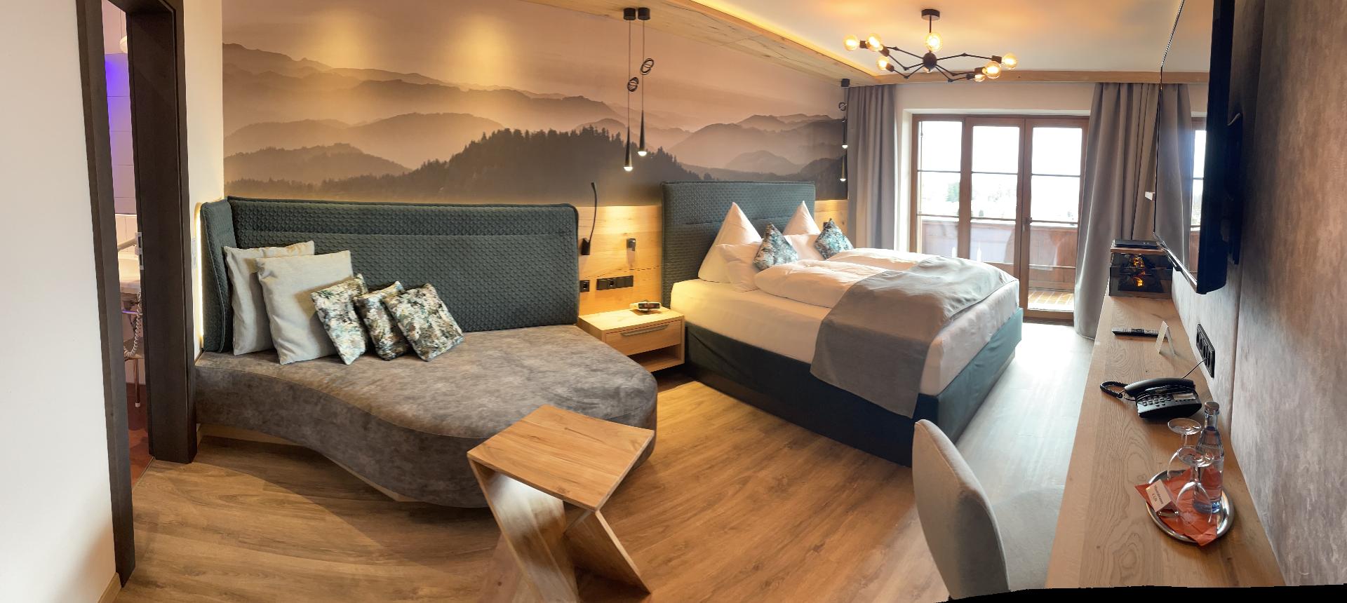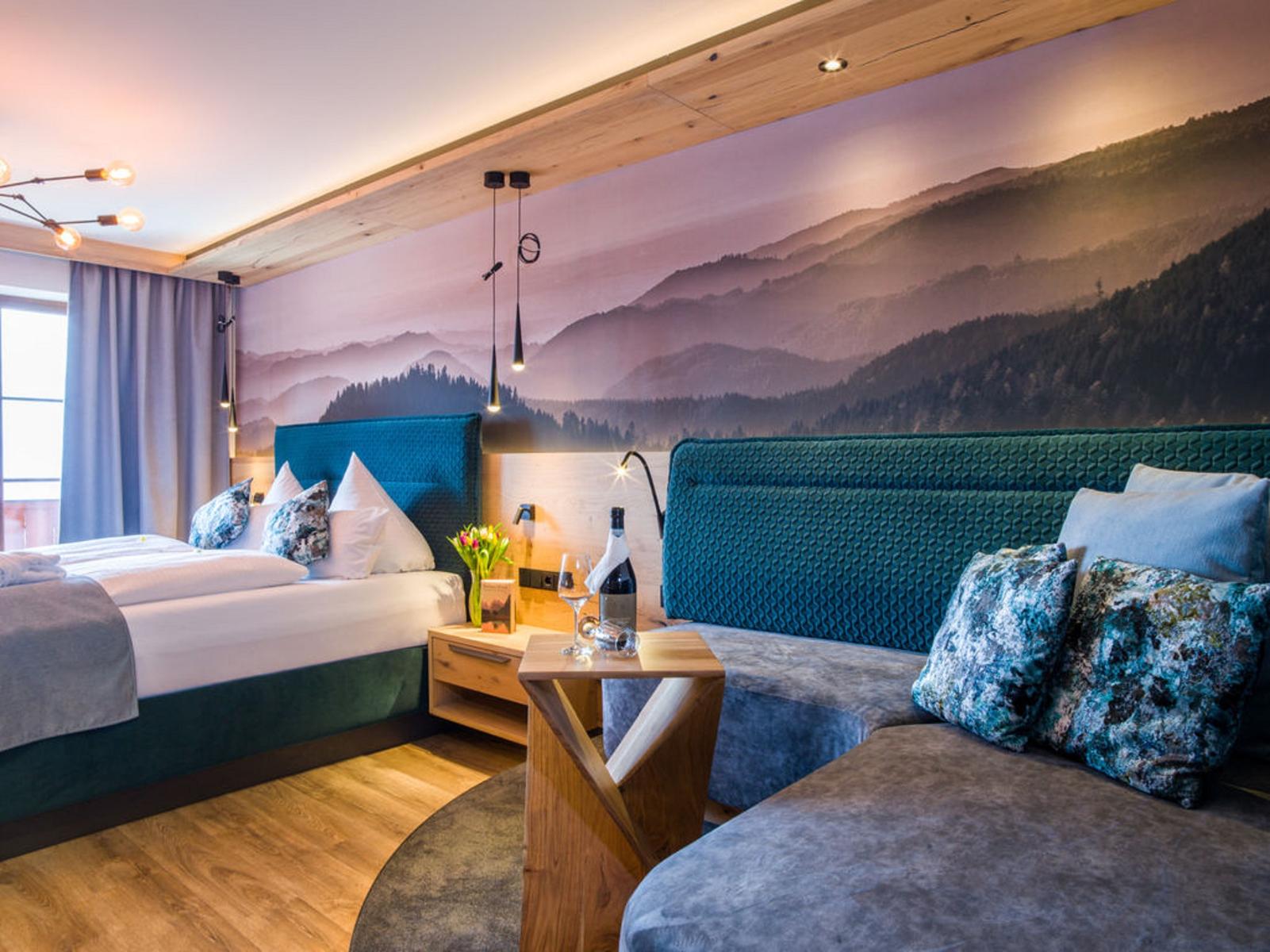 Genießen Sie gemütliche Zimmer mit viel Komfort und einem wunderbaren Panoramablick. Ausgestattet mit Balkon, Kühlschrank, Dusch- und Badetüchern sowie moderner Ausstattung bieten sie Ruhe und frische Luft für angenehmen Schlaf. Unsere Zimmer sind in verschiedenen Kategorien und Größen erhältlich, von Standard-Doppelzimmern mit Balkon über Komfortzimmer mit Wohnecke bis hin zu Familienzimmern und Suiten mit mehreren Schlafzimmern – für jeden ist etwas dabei. Alle unsere Häuser sind direkt miteinander verbunden, sodass Sie bequem zwischen ihnen hin und her wechseln können. Ein Bademantelgang führt zum Hallenbad und Saunabereich.