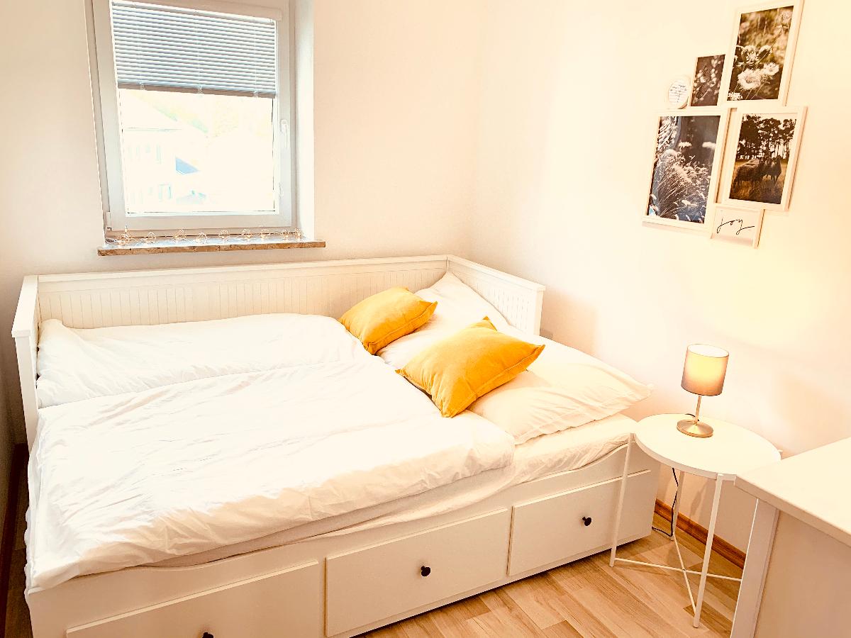 Die moderne Ferienwohnung befindet sich im 2. Stock und ist für bis zu 4 Personen geeignet. Die Wohnung verfügt über insgesamt 3 Zimmer mit einer offenen Küche samt Sitzgelegenheit, ein Badezimmer mit Dusche, eine großzügige Diele und einen großen, überdachten Balkon mit einem herrlichen Fernblick auf die Umgebung. Die Beheizung der Wohnung erfolgt mittels Fußbodenheizung und als zusätzliche Heizquelle dient ein Schwedenofen im Wohnbereich. Zur Wohnung gehört ein eigener Carport - weitere kostenlose Parkplätze finden sich an der Straße.