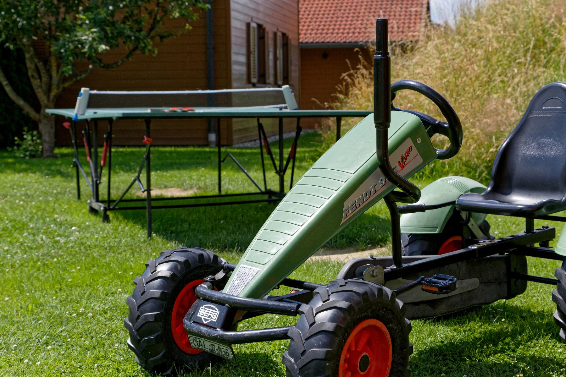 Getreu unserem Motto können Eltern bei uns den Alltag hinter sich lassen, während Ihre Kinder auf dem Spielplatz mit Tischtennis, Fußballtor und Kleinkinderspielplatz toben, in der Spielscheune Spaß haben oder mit Kettcar und Co. das Feriendomicil erkunden.