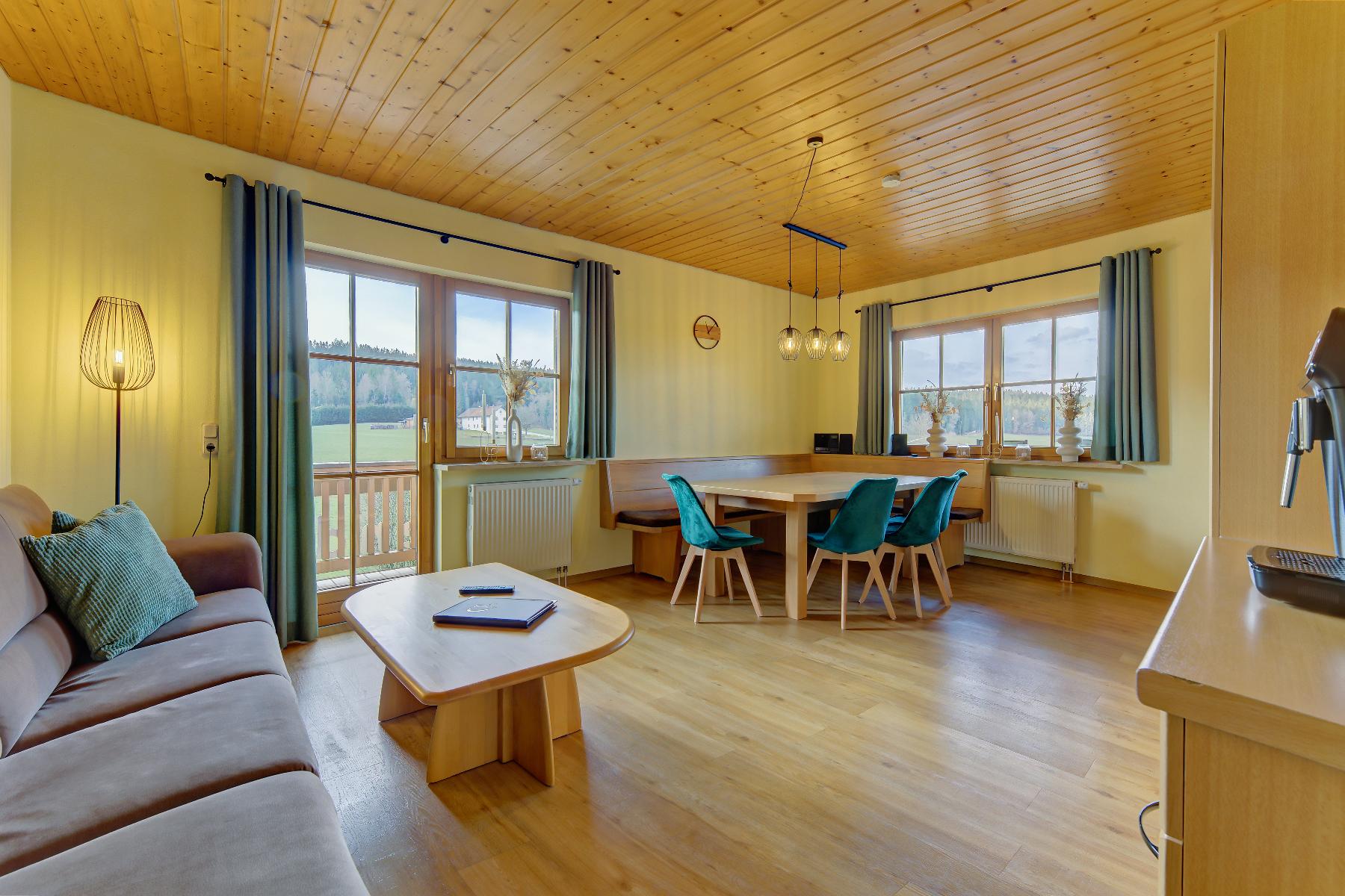 Das ideale Urlaubsziel egal ob für Familien, Oma und Opa mit Enkeln, Paare oder Freunde. Sie finden bei uns alle Wohngrößen, von der komfortablen Zweiraum-Ferienwohnung, vom kuscheligen Familienapartment mit zwei Schlafzimmern bis hin zur extra großen Wohnung mit 4 Schlafzimmern für 8 Personen! Bei uns müssen Sie sich nicht entscheiden, ob es luxuriöser Wellness-, Abenteuer oder Kinderurlaub sein soll. Die ganze Familie kommt bei uns voll auf Ihre Kosten. Wir liegen sehr ruhig und sonnig in einer kleinen Seitenstraße im Waldbauerndorf Bärnzell bei Zwiesel im Herzen des Bayerischen Waldes, mit Traumblick auf Wald und Wiesen. Sie sind in zwei Minuten zu Fuß am Waldrand. Die insgesamt drei Häuser unserer Anlage befinden sich auf einem rund 3.000 Quadratmeter großen Grundstück mit Naturgarten und Kinderspielparadies.