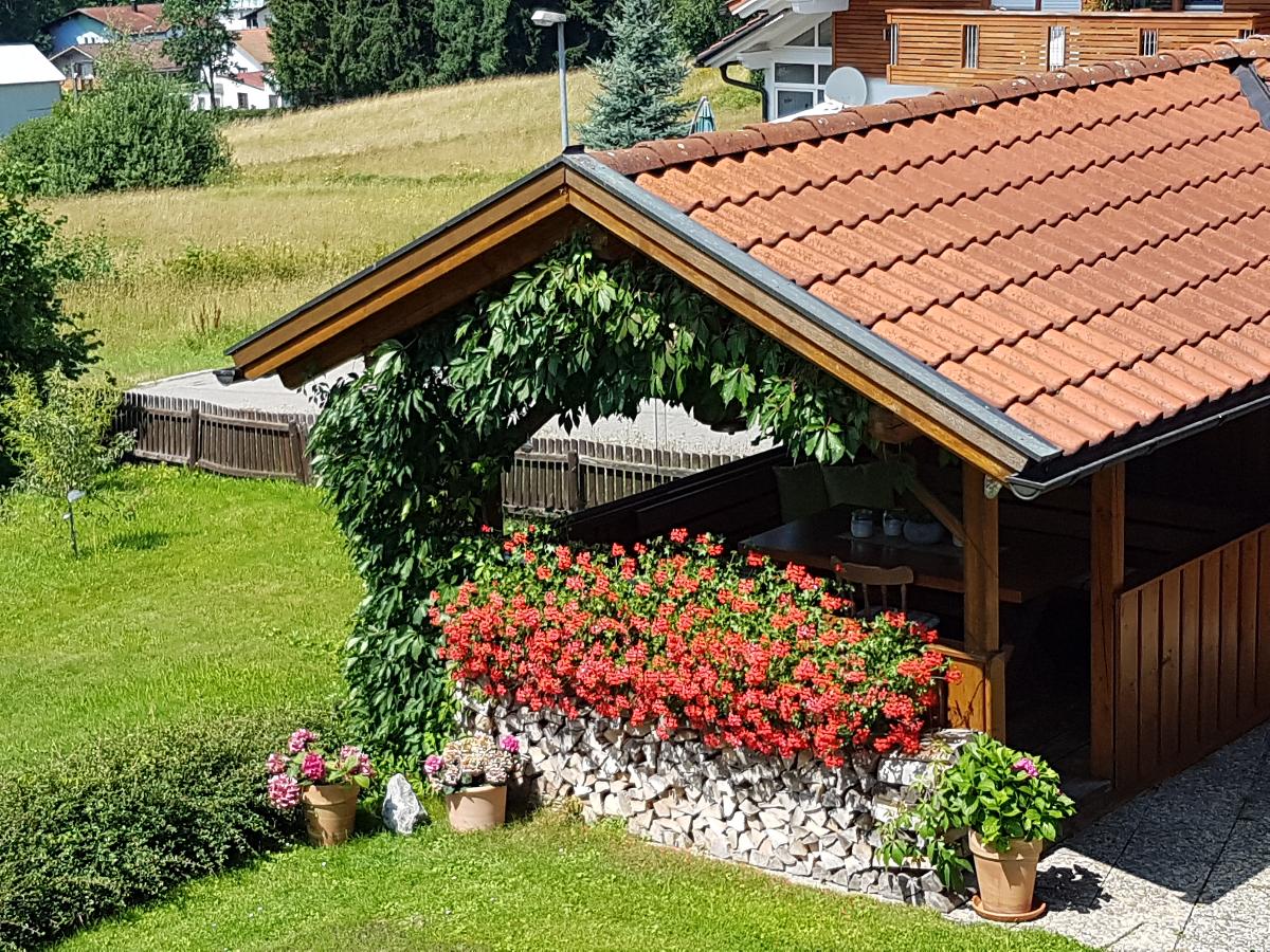 Gartenbenutzung und ein überdachtes Gartenhäuschen.