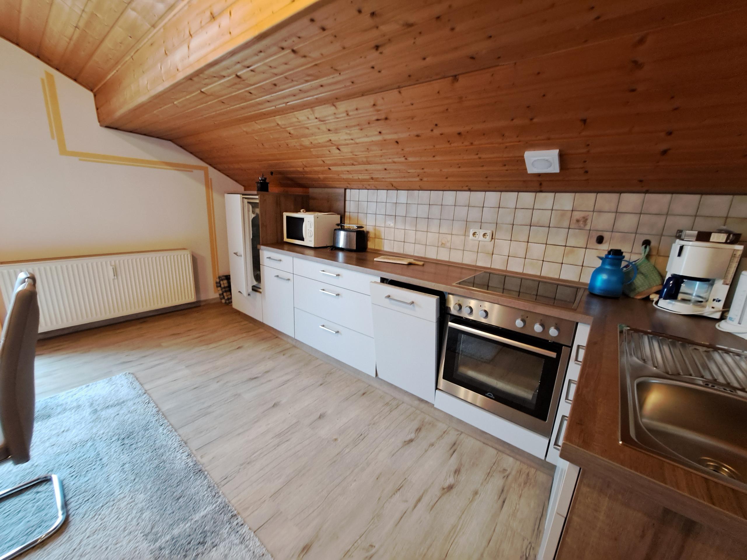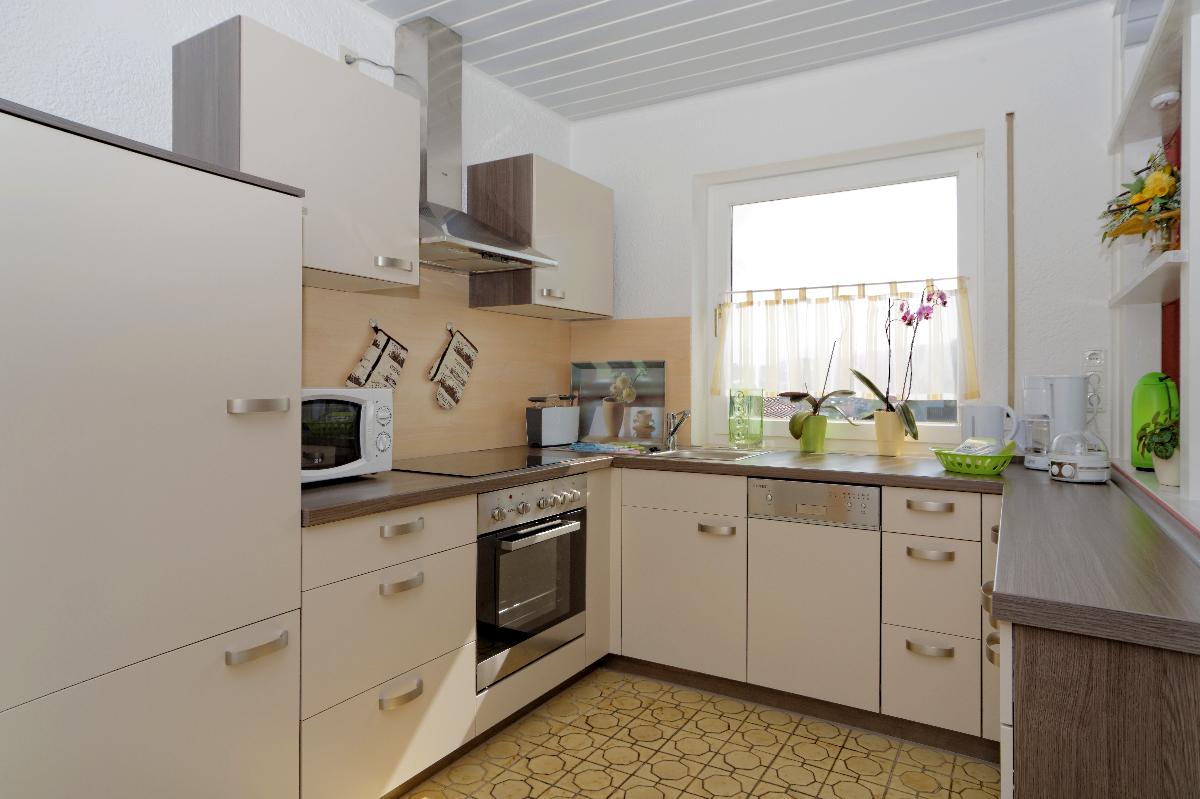 ,Küche mit Spülmaschine, Heißluftherd (Ceranfeld), Kühlschrank m.