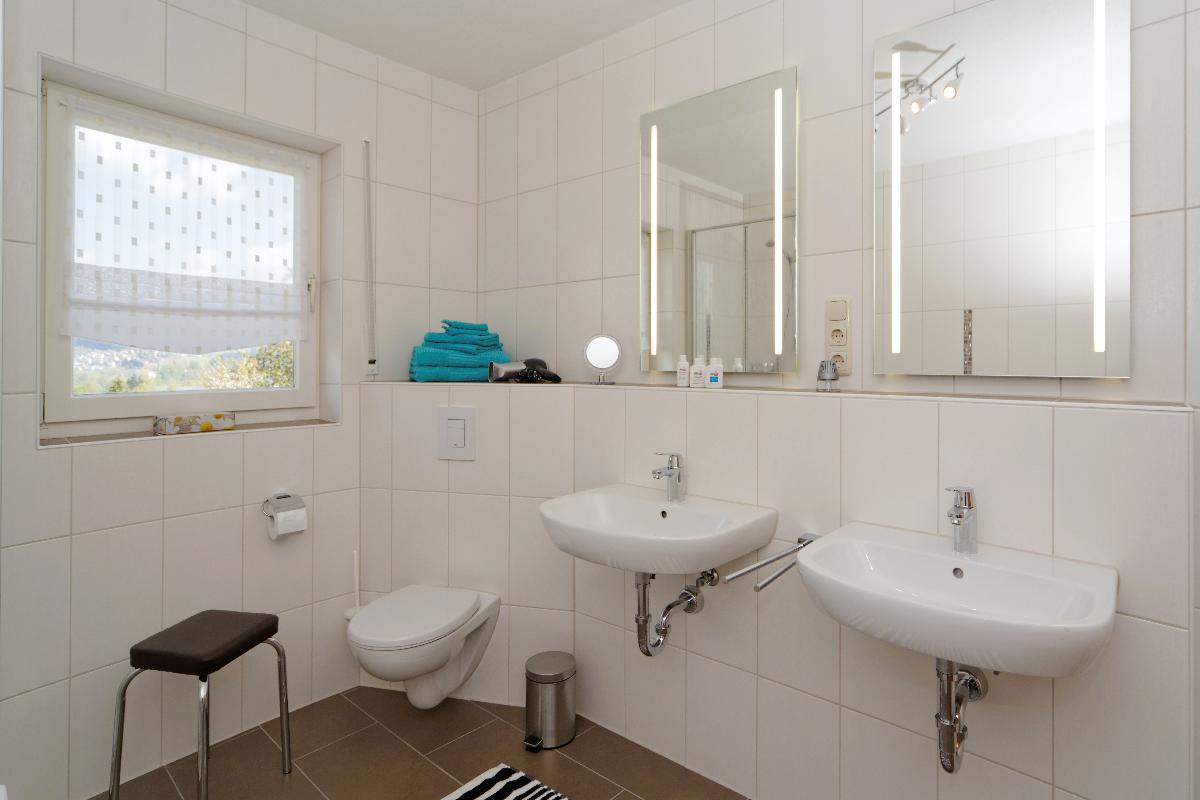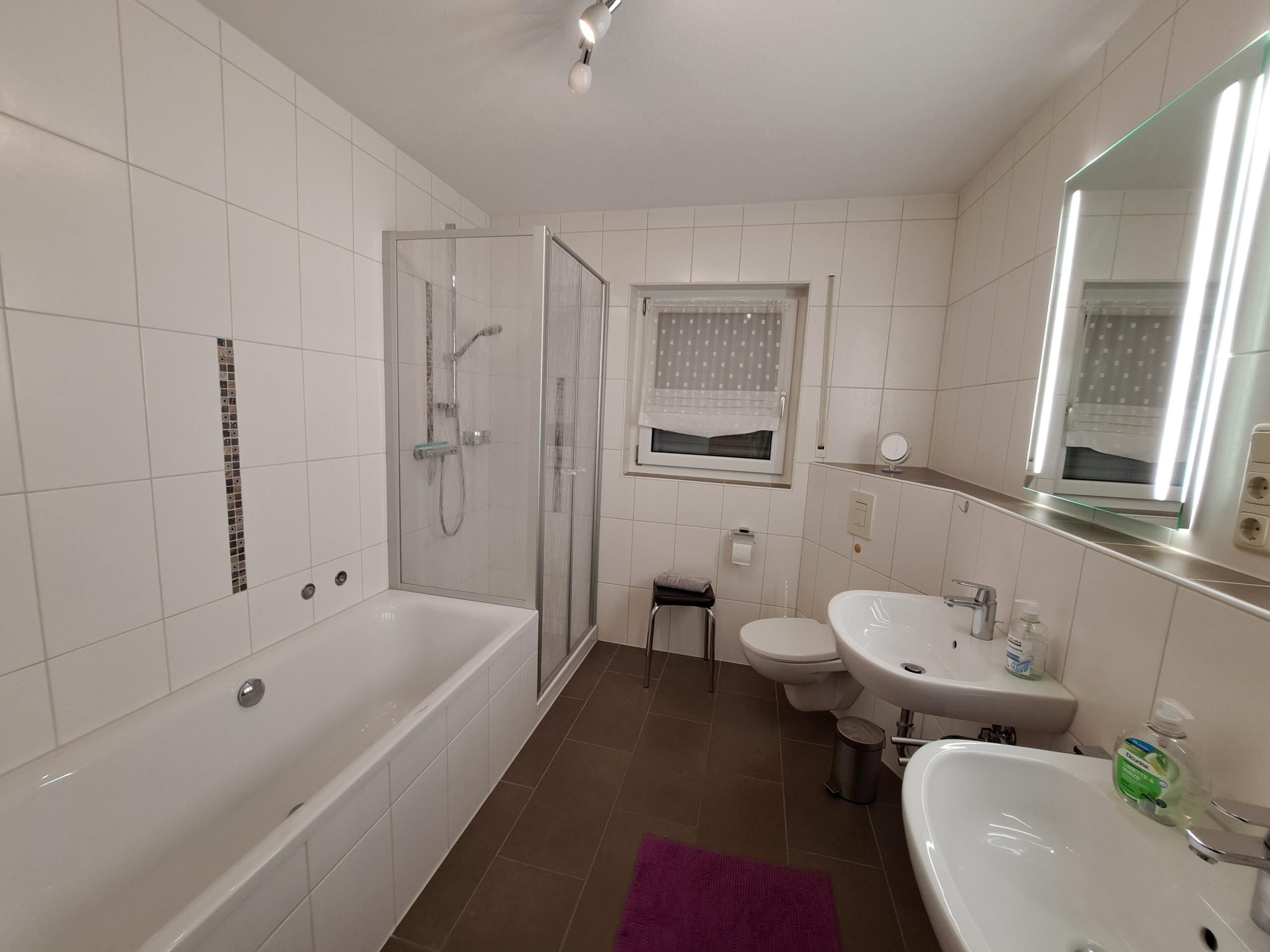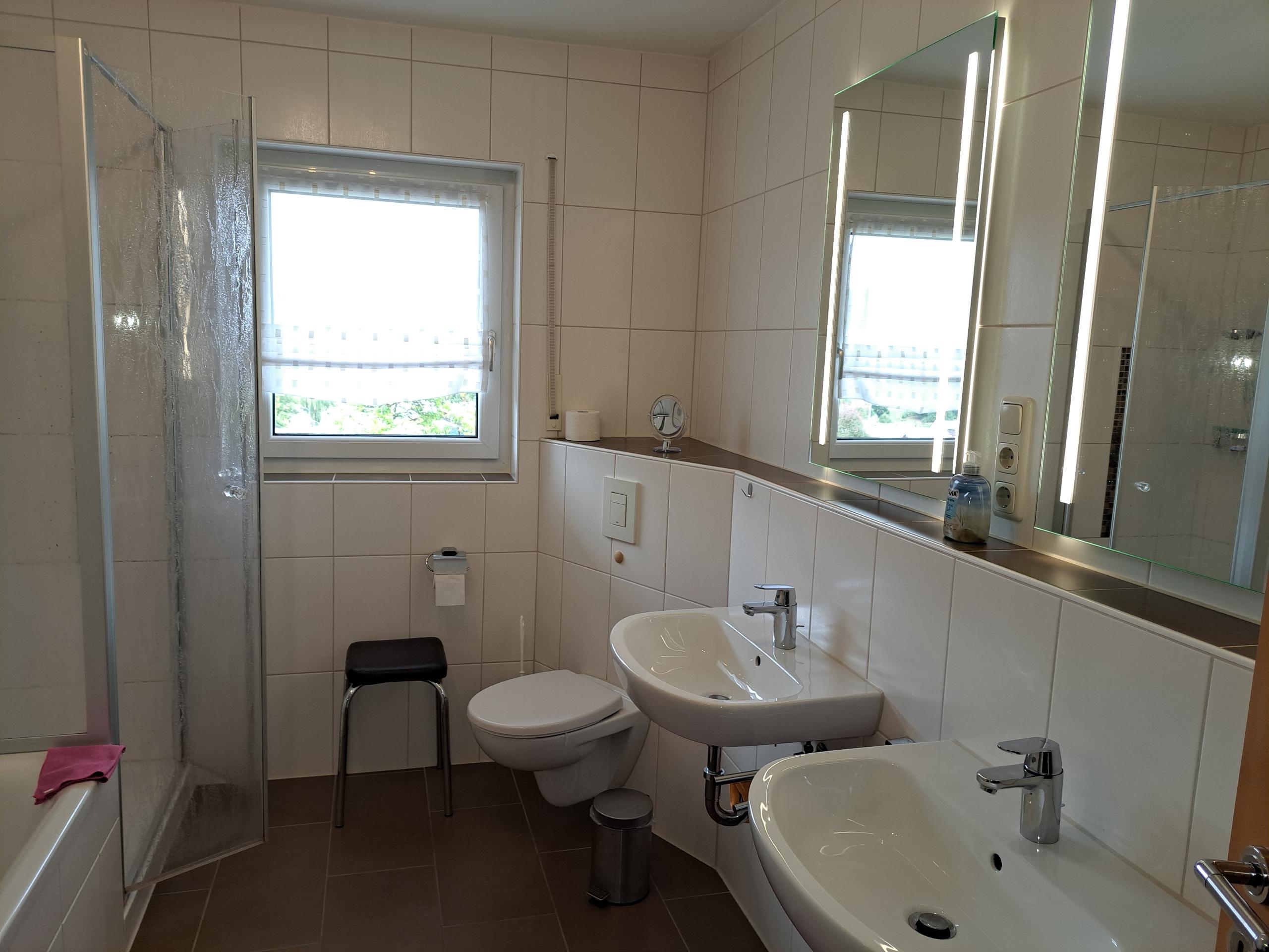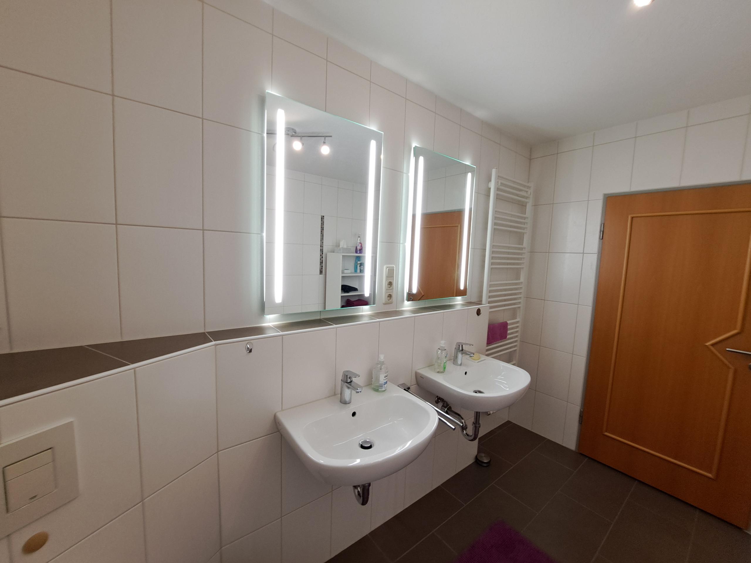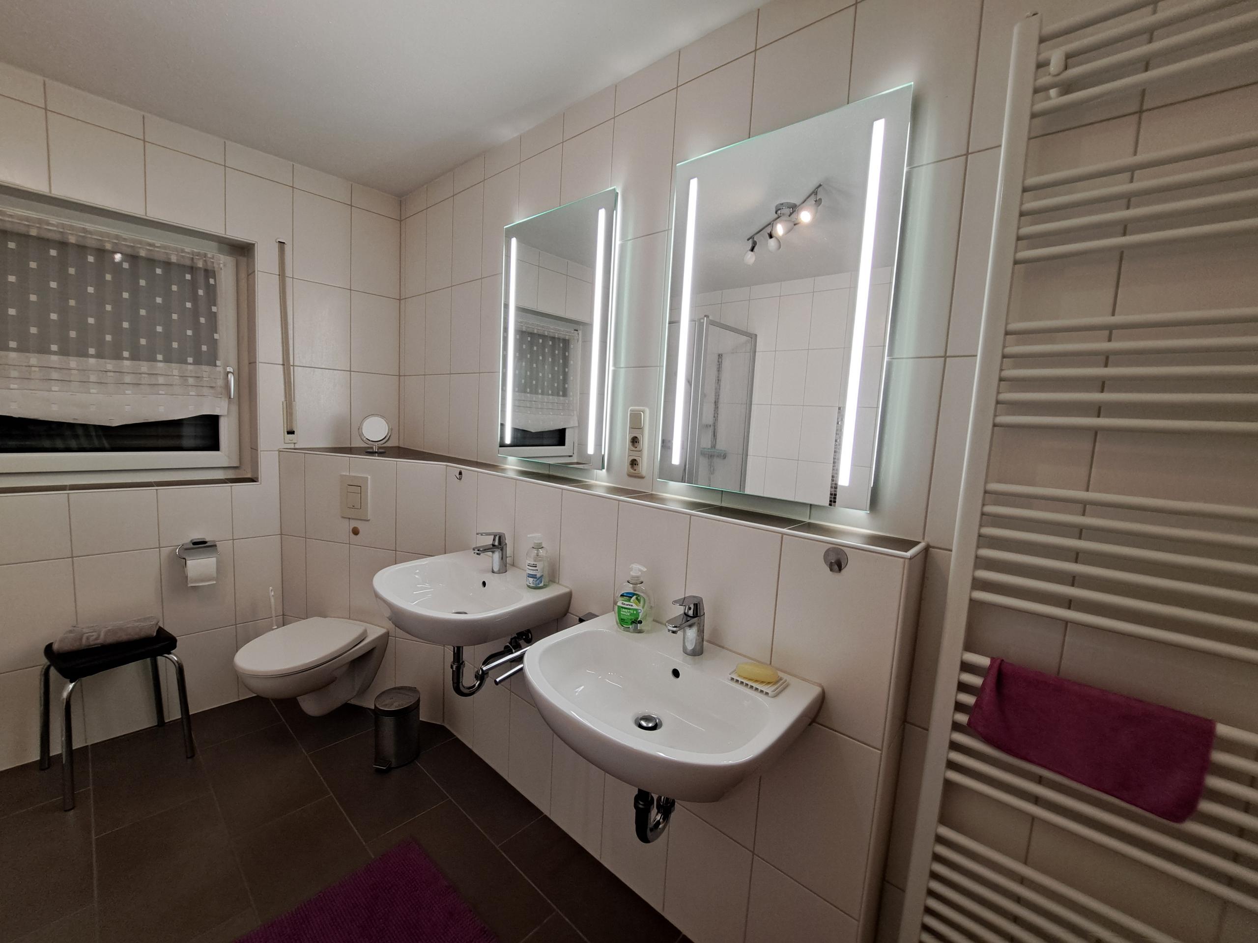 Dusche, WC, -2- Waschbecken, seperates Gäste WC, Balkon nach Süden mit