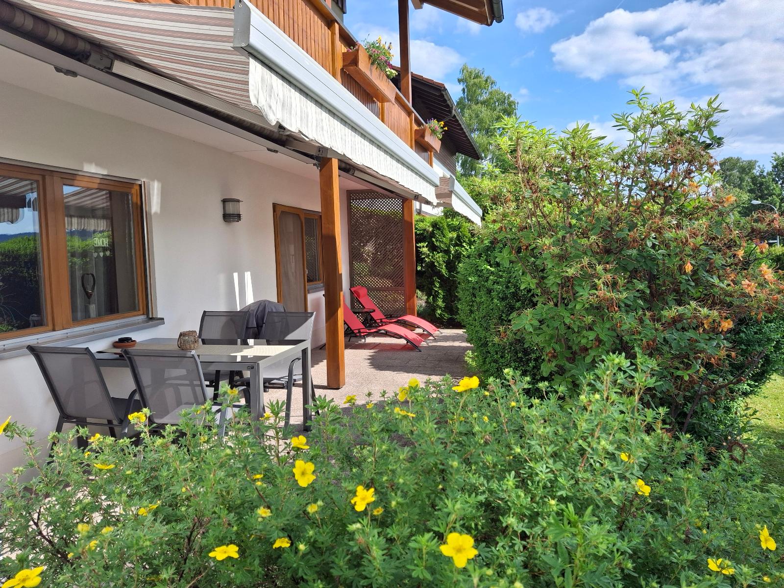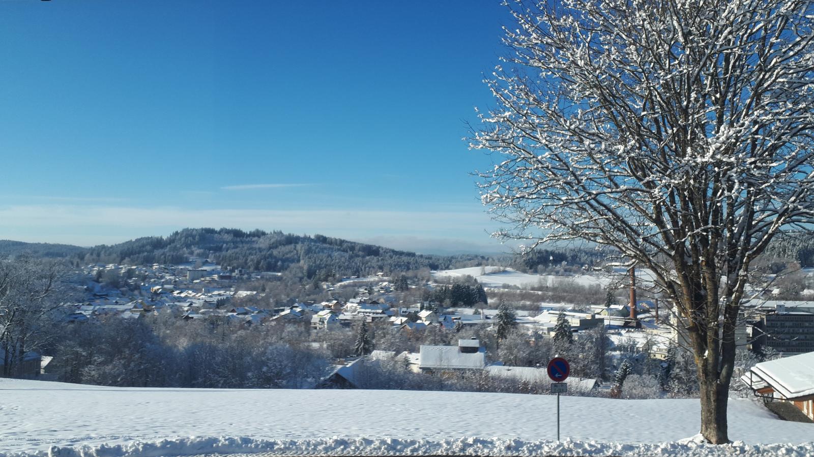 Die Ferienwohnung liegt in zentraler Lage 0,5 Kilometer vom Stadtzentrum entfernt. Durch die erhöhte Lage genießen Sie auf der eigenen Terrasse einen wunderschönen Ausblick über die Stadt Zwiesel und die umliegenden Berge.