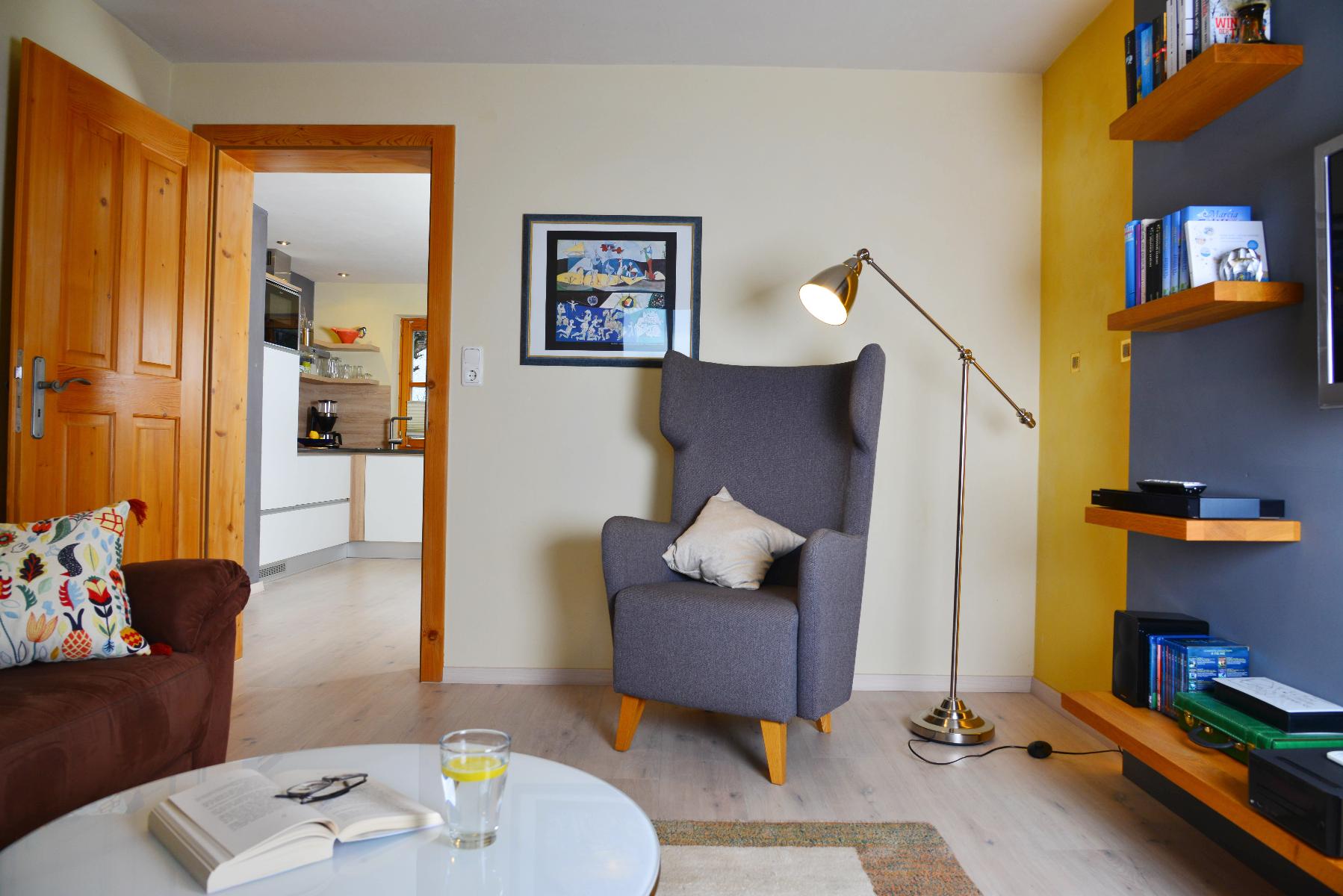 - Atelierwohnzimmer mit gemütlicher Sofaecke, TV, Schreib- und Leseecke