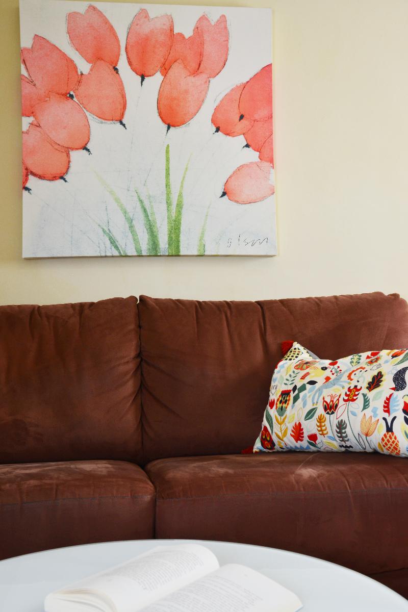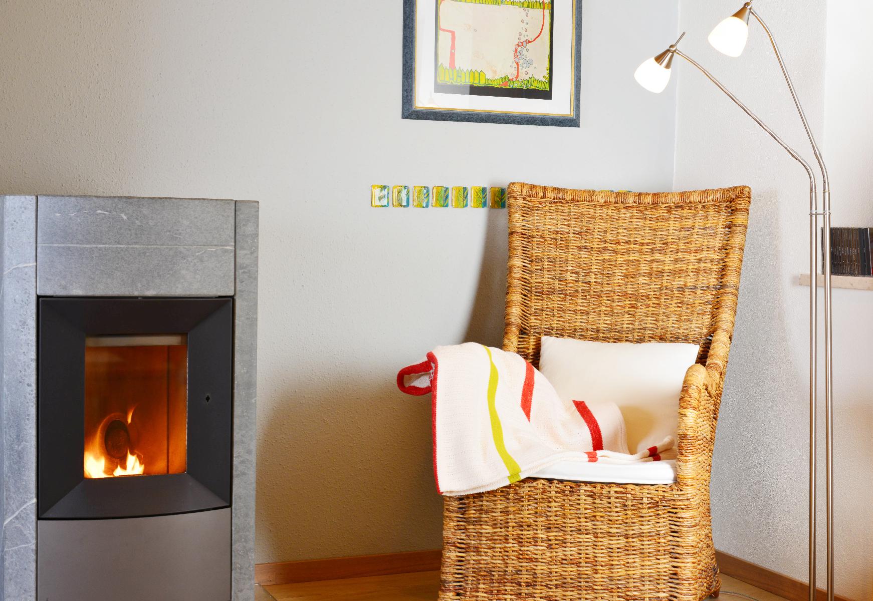 Wohnzimmer befindet sich eine gemütliche Sofaecke, Radio und ein