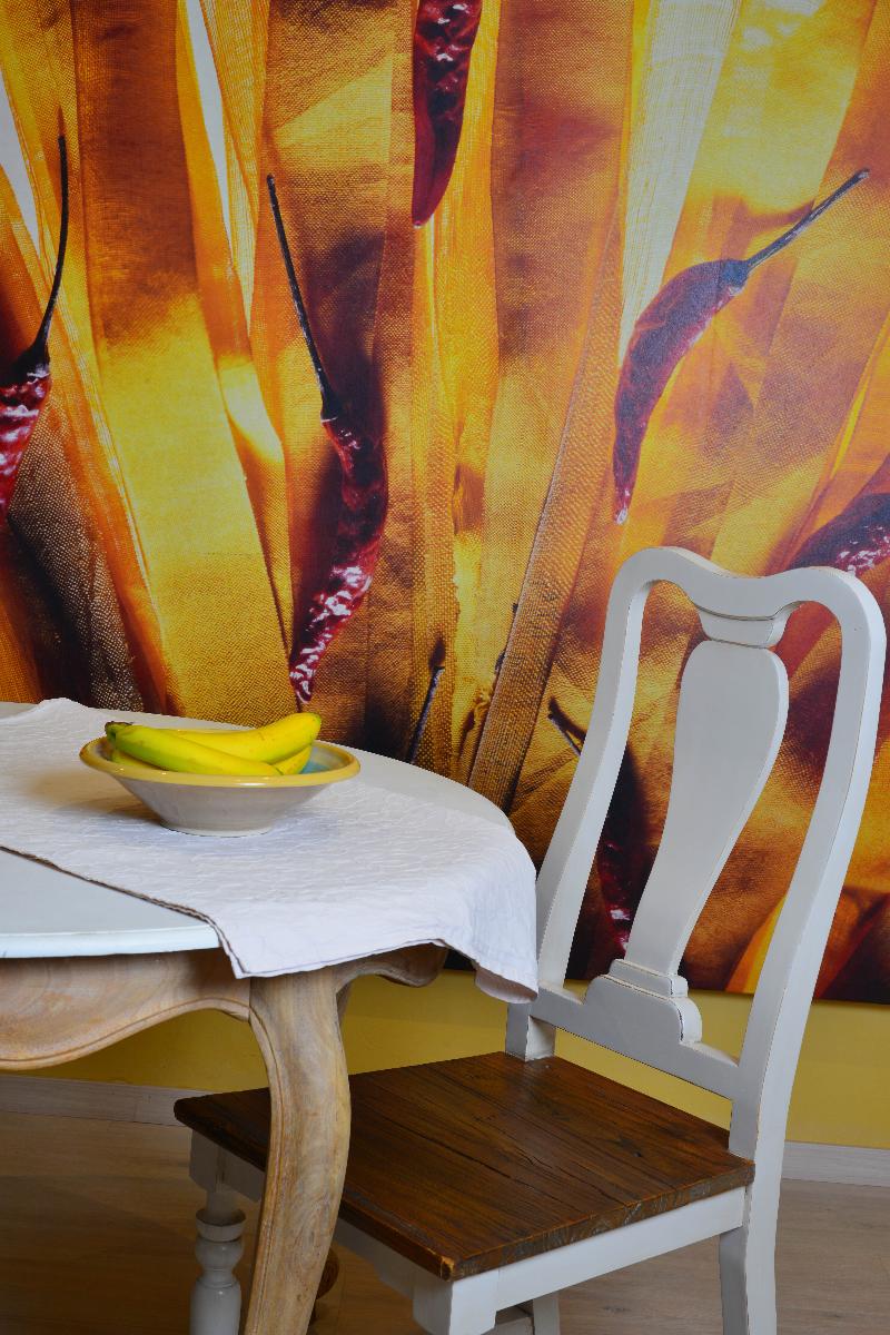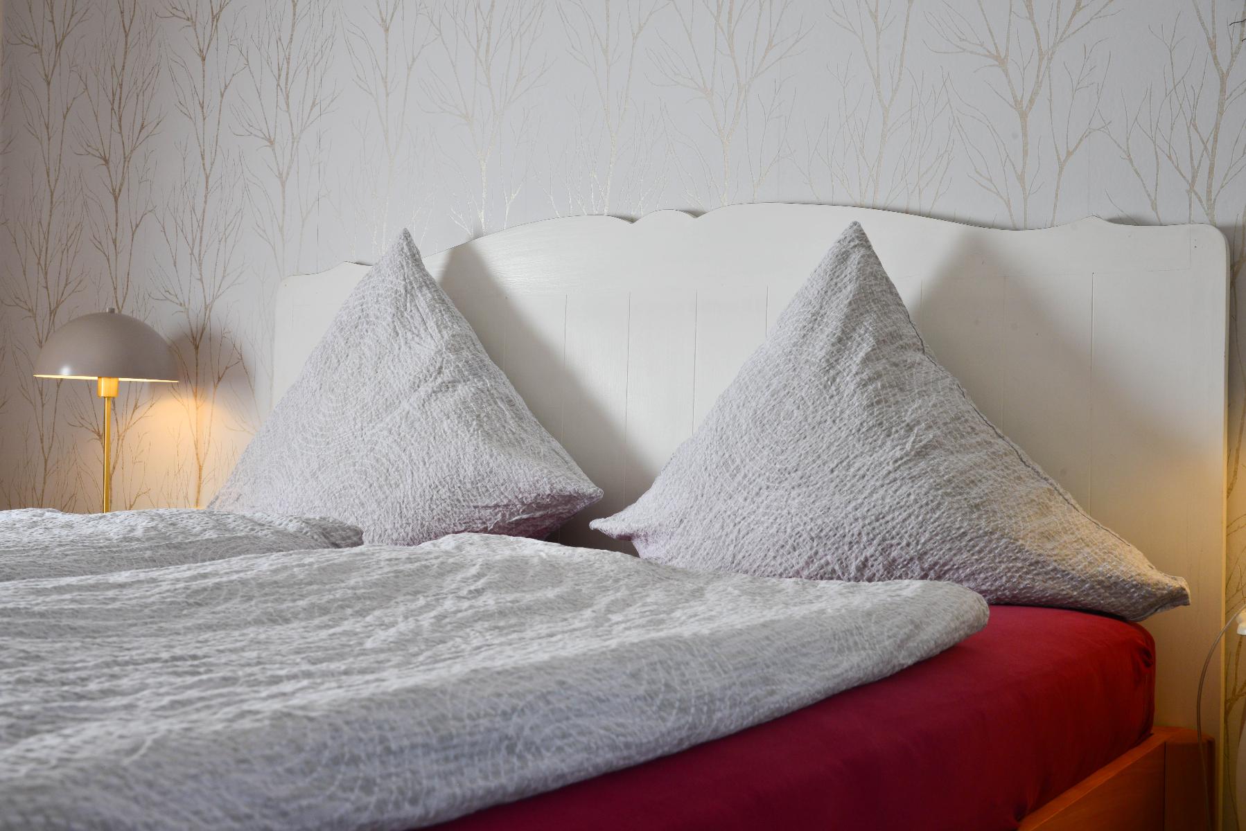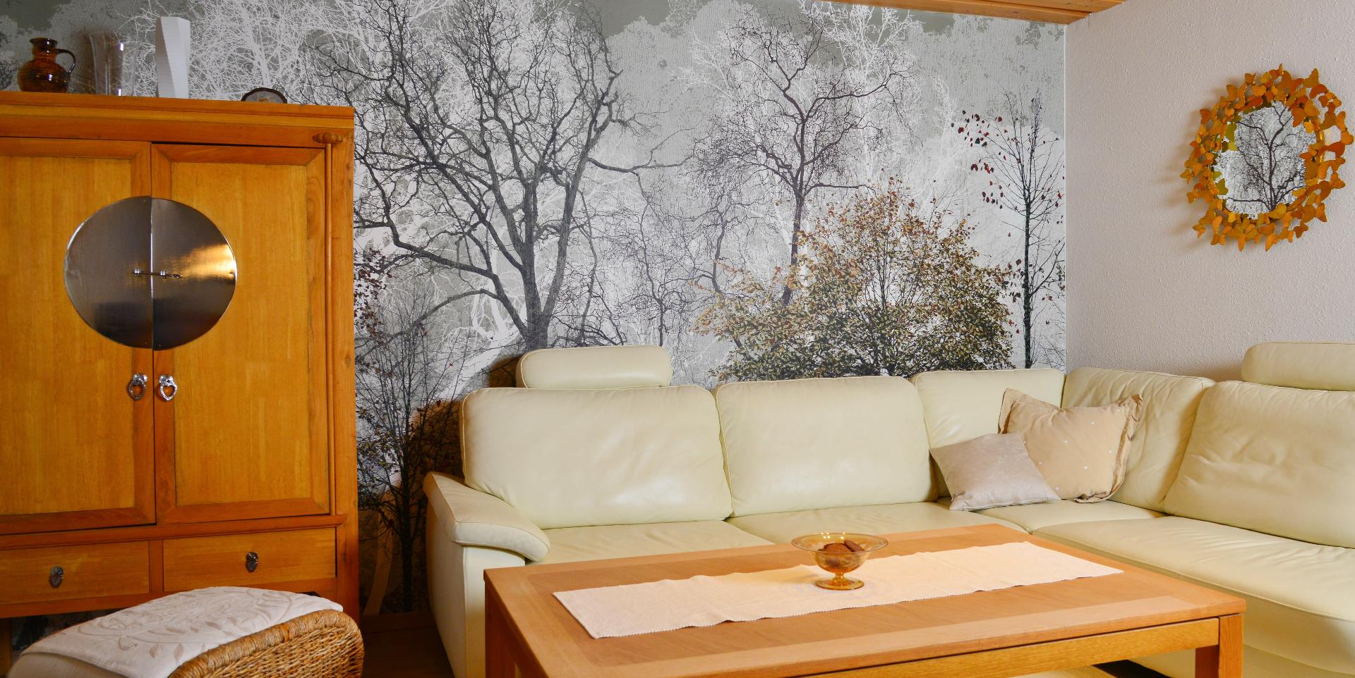 Wänden und hochwertigen Vollholzmöbeln. Die Ferienwohnung verfügt über