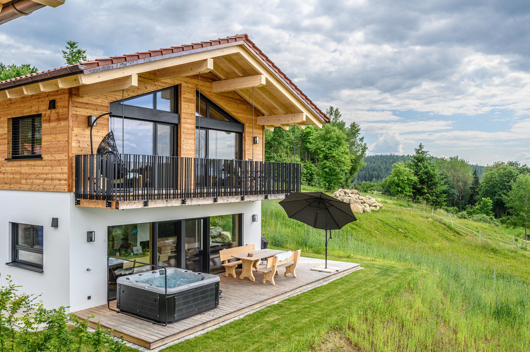 Wellness Urlaub im Bayerischen Wald in einem unserer drei Massiv-Holz Chalet aus heimischer Fichte.