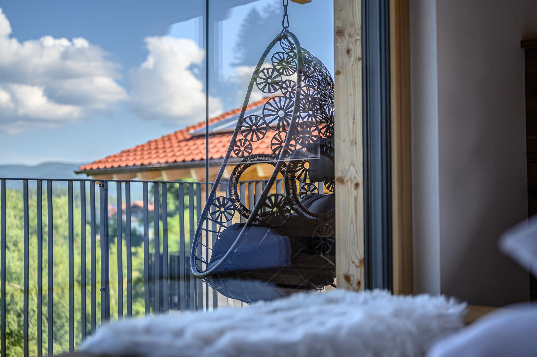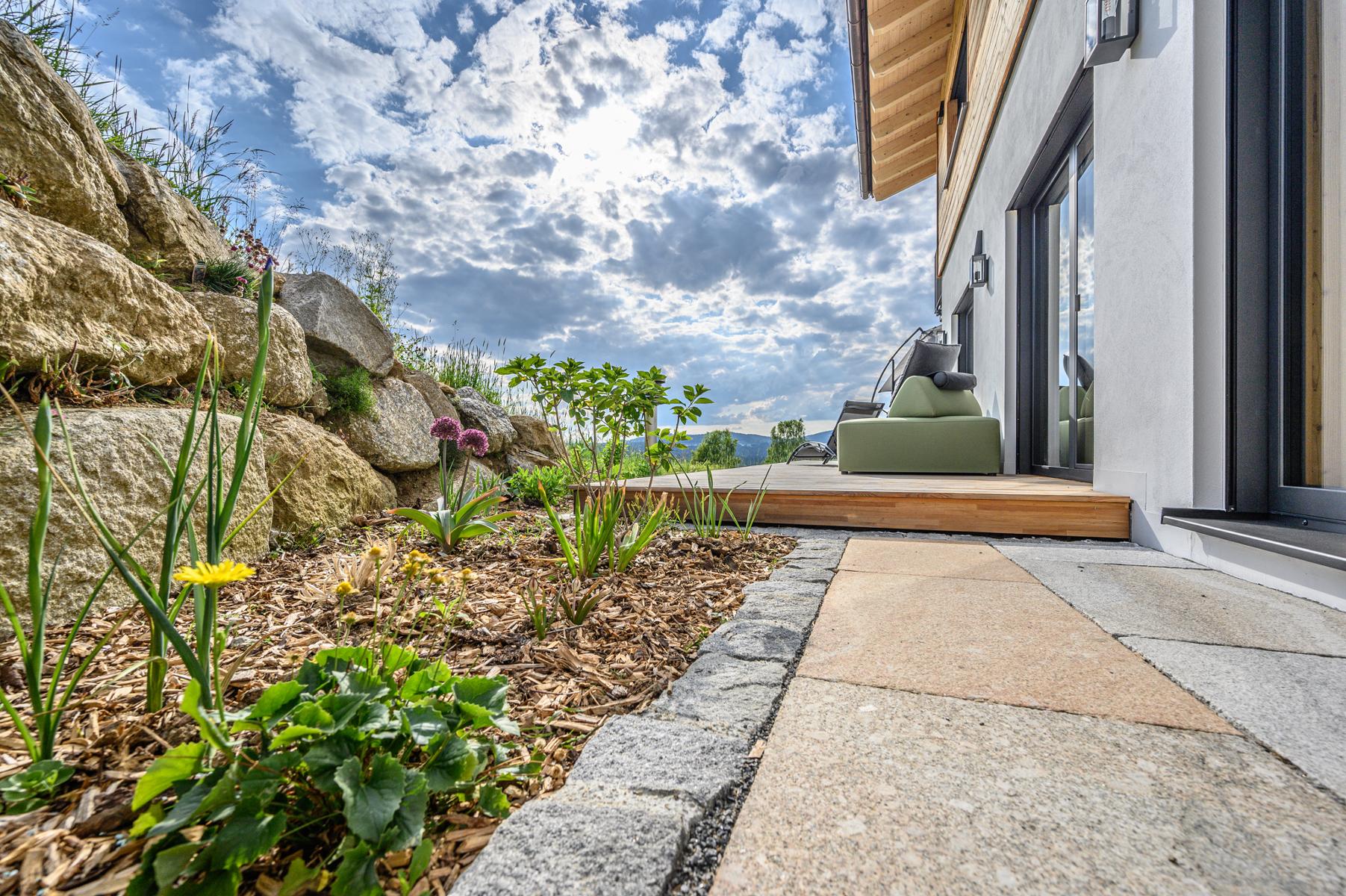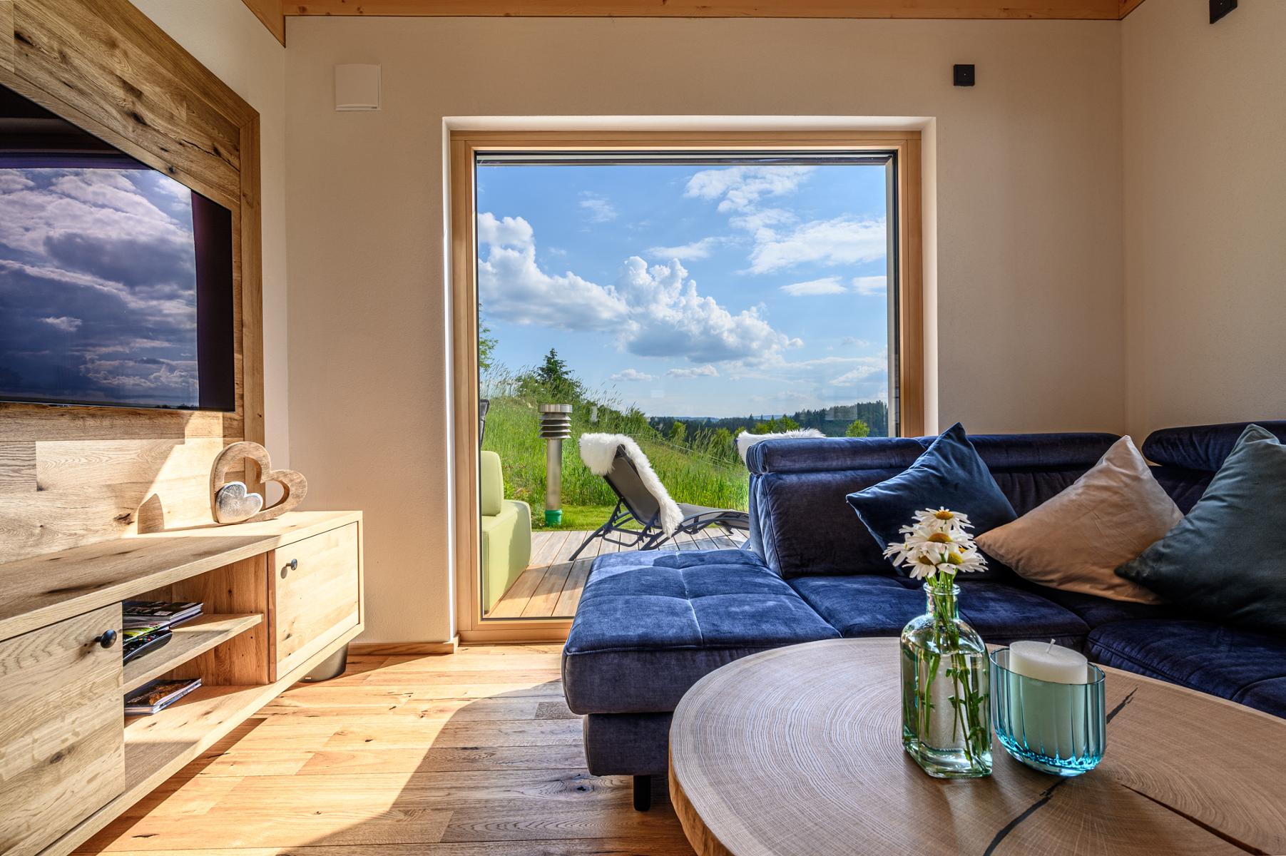 Der Natur ganz nah sind Sie durch unser offenes Design mit den großen Fensterelementenund dem Holzdeck mit Panorama-Blick.