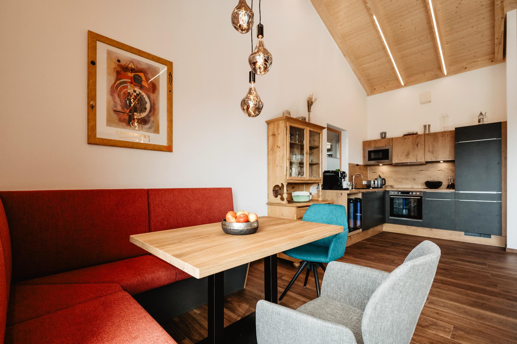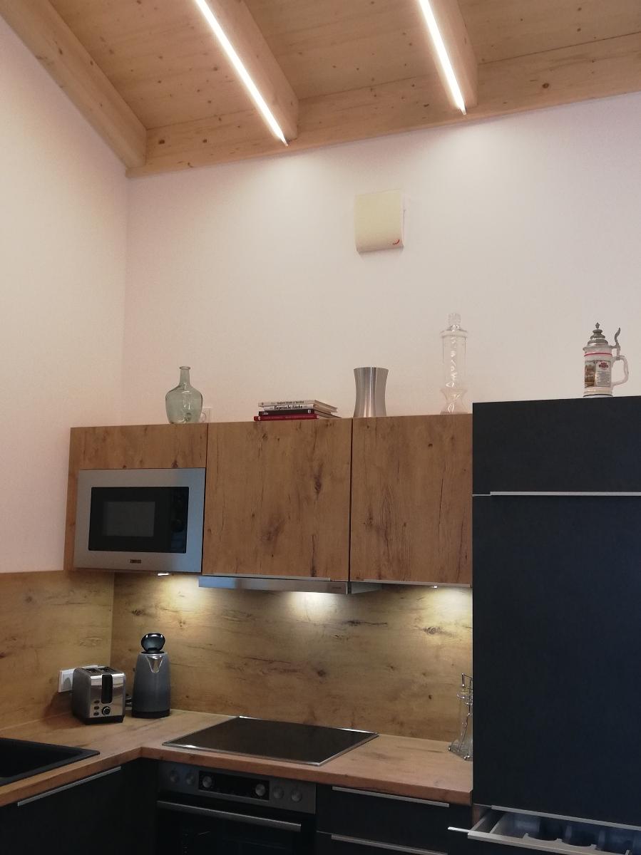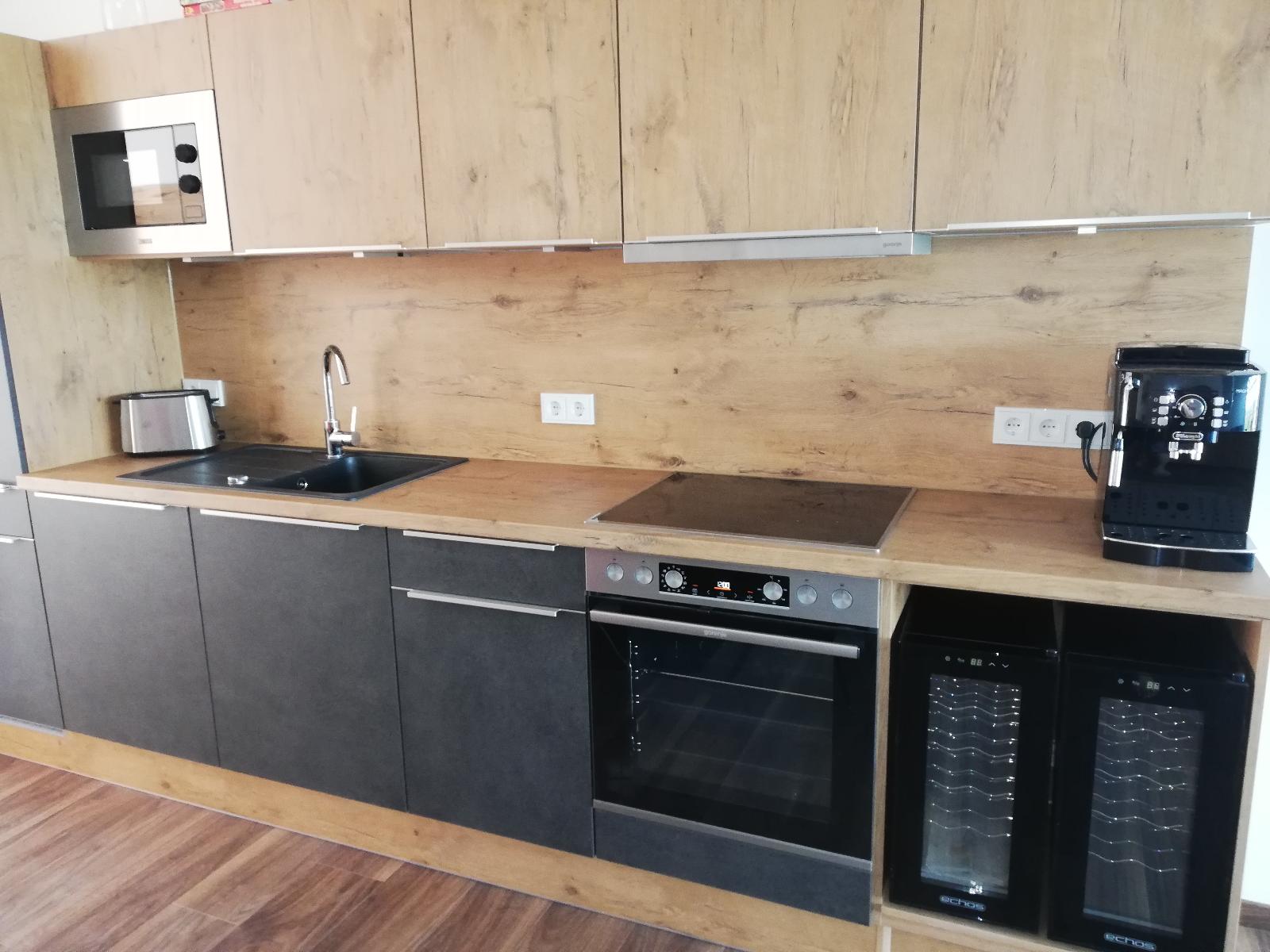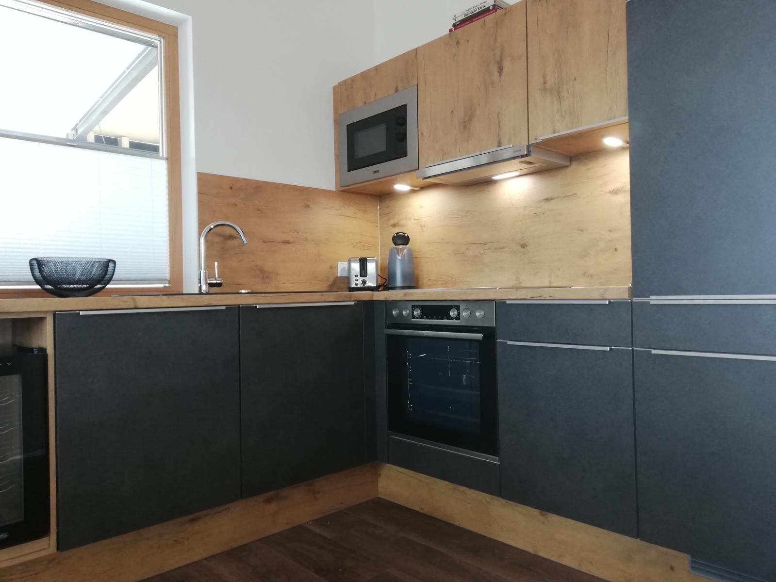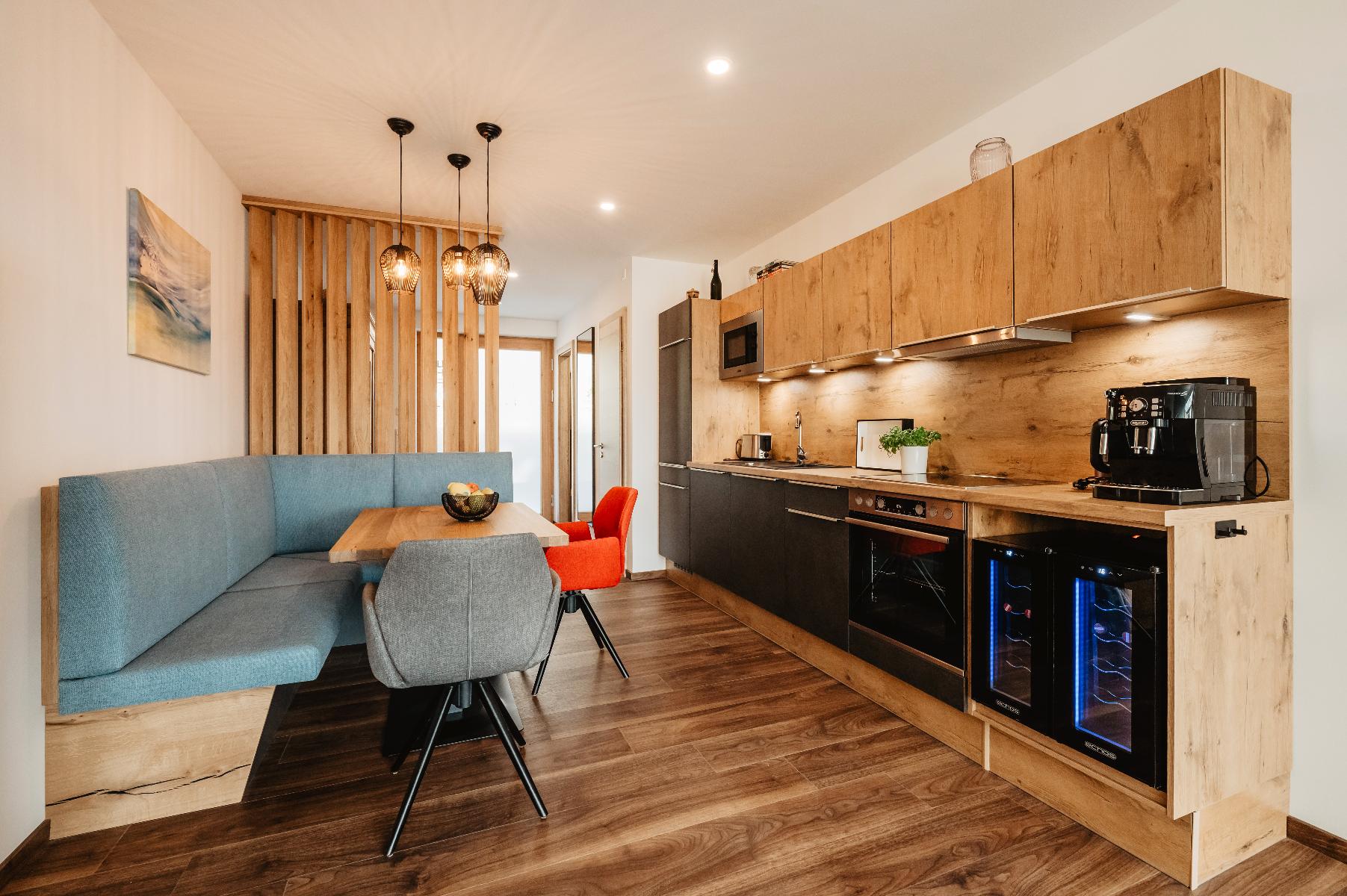 Unsere Küchen sind mit hochwertigen Geräten ausgestattet. Außerdem finden Sie eine Grundausstattung an Gewürzen, Essig/Öl, eine kleine Tee-Auswahl sowie einen gefüllten Kaffee-Vollautomaten vor.