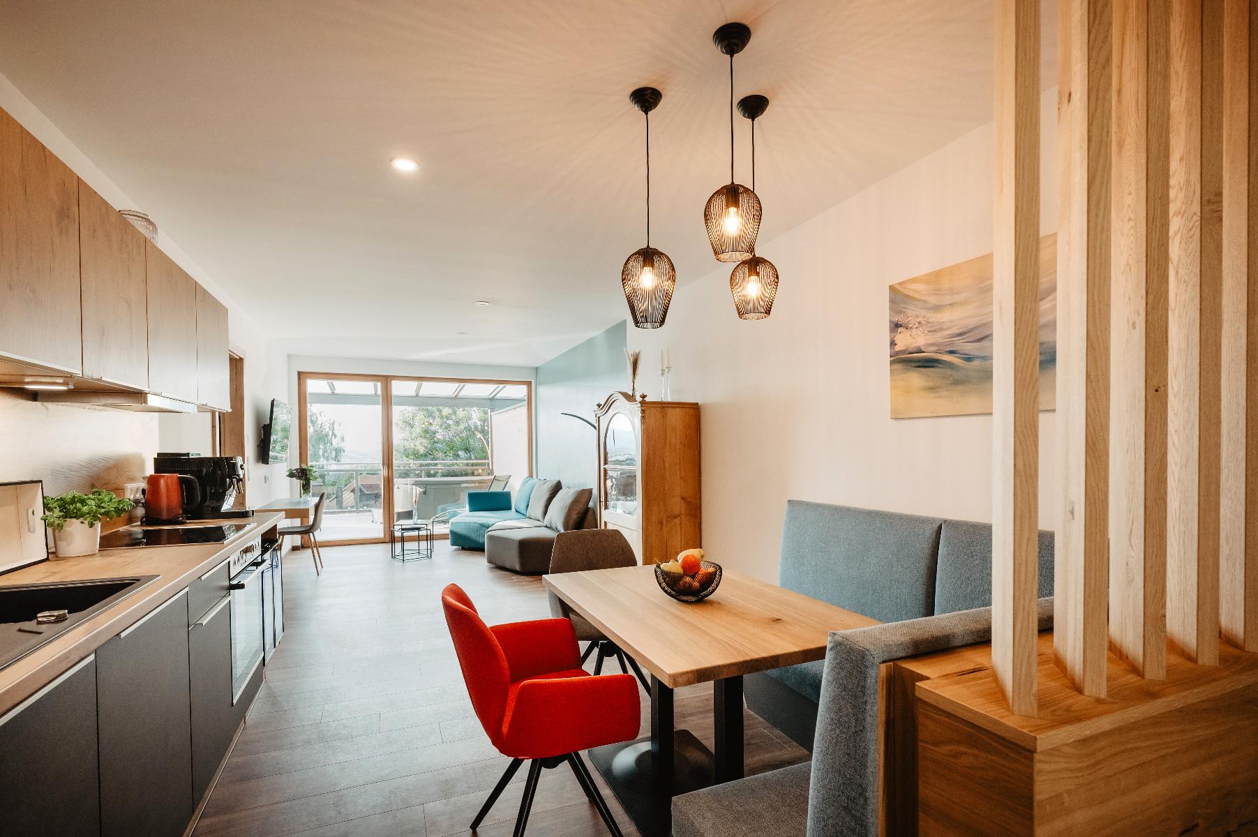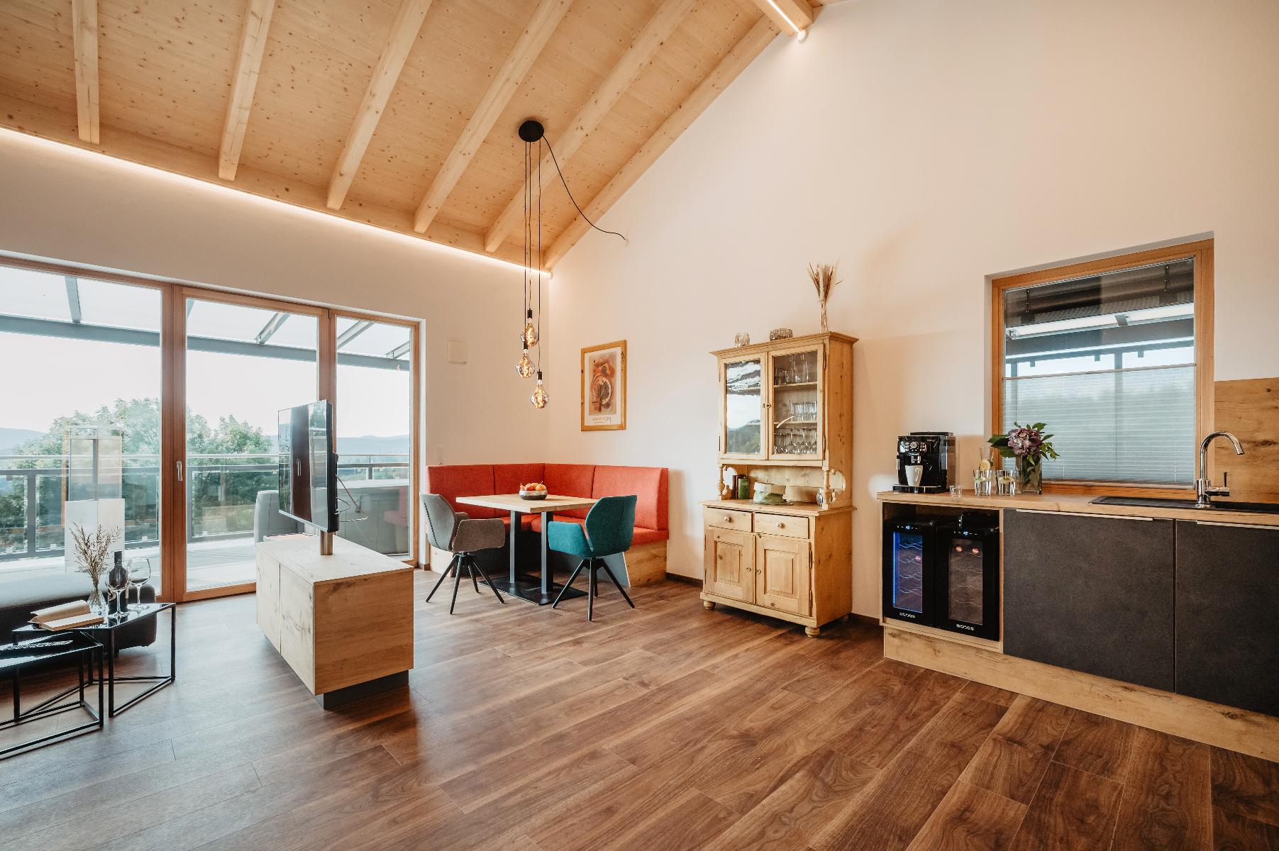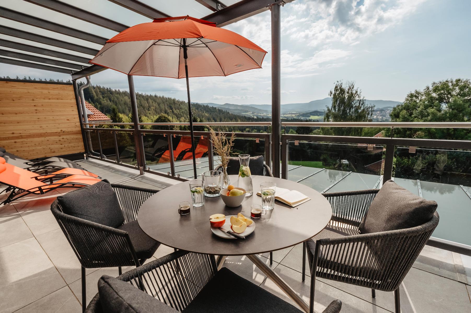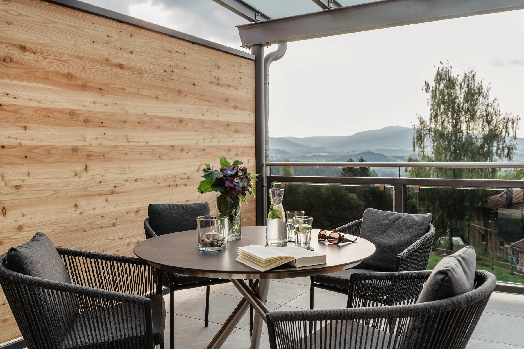 Es erwarten Sie vier neu gebaute moderne und hochwertig eingerichtete Feriensuiten in ruhiger Ortsrandlage mit einer grandiosen Aussicht über Zwiesel und die Berge des mittleren Bayerischen Waldes. Jede Suite wurde vom Deutschen Tourismusverband mit fünf Sternen ausgezeichnet.